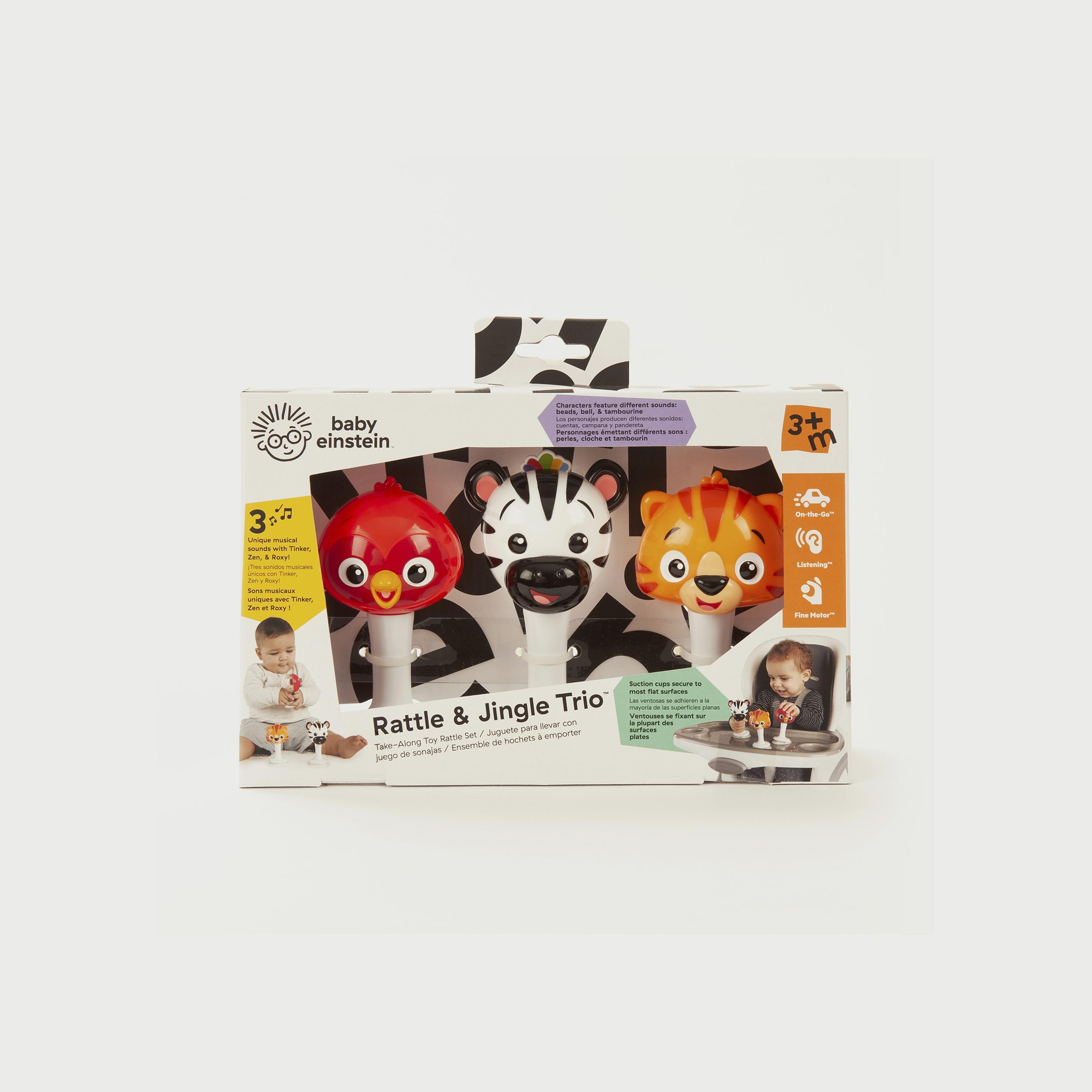 نقدم لكم ثلاثي الآلات المحمولة باليد من بيبي أينشتاين - الطريقة المثلى لنقدم لكم طفلكِ الصغير إلى عالم الموسيقى! تشتمل هذه المجموعة من ثلاثة أدوات على الدف، والماراكا، والكلاكير، وكلها مصممة لمساعدة طفلكِ على استكشاف عالم الموسيقى. الأدوات مصنوعة من مواد متينة وغير سامة ومصممة بحيث يسهل حملها على أيدي الأطفال الصغار. ستساعد الألوان الزاهية والأصوات الممتعة طفلكِ على تنمية إحساسه بالإيقاع والموسيقى. مع ثلاثية الأدوات المحمولة باليد من بيبي أينشتاين، يمكنك مساعدة طفلكِ على اكتشاف متعة الموسيقى!