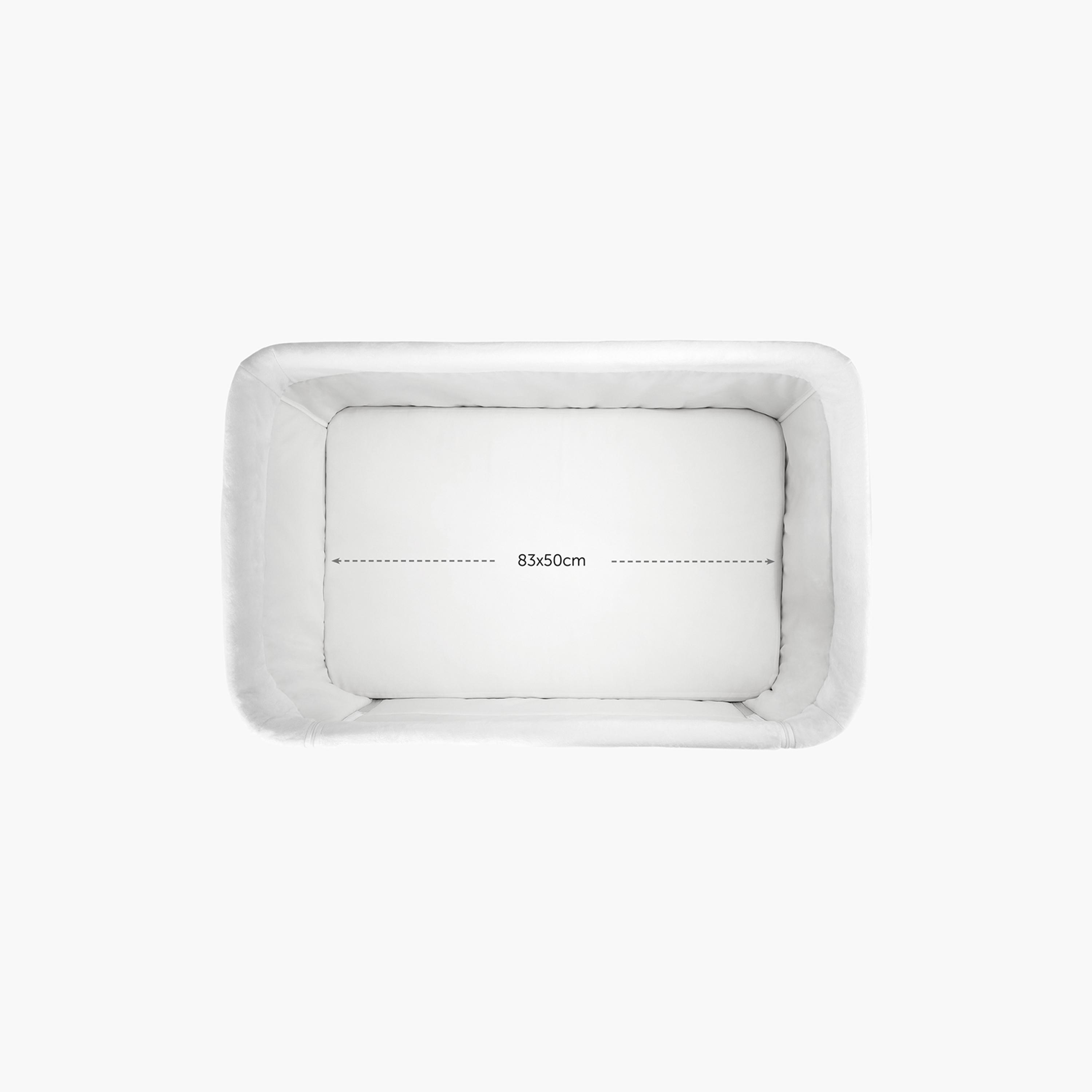 مهد مبطن بنعومة وقابل للتعديل بارتفاع قابل للتعديل لإبقاء المولود الجديد قريبًا من السرير