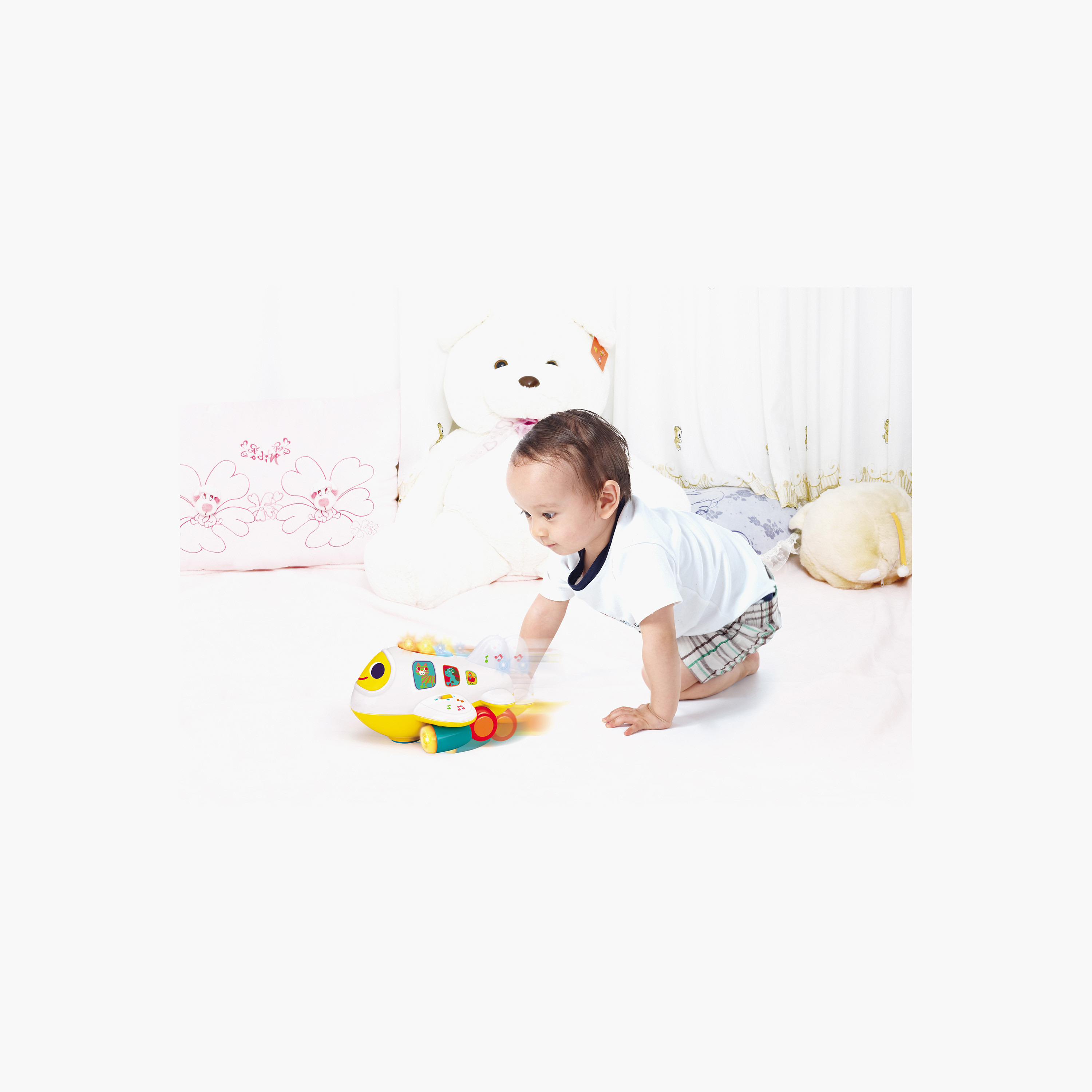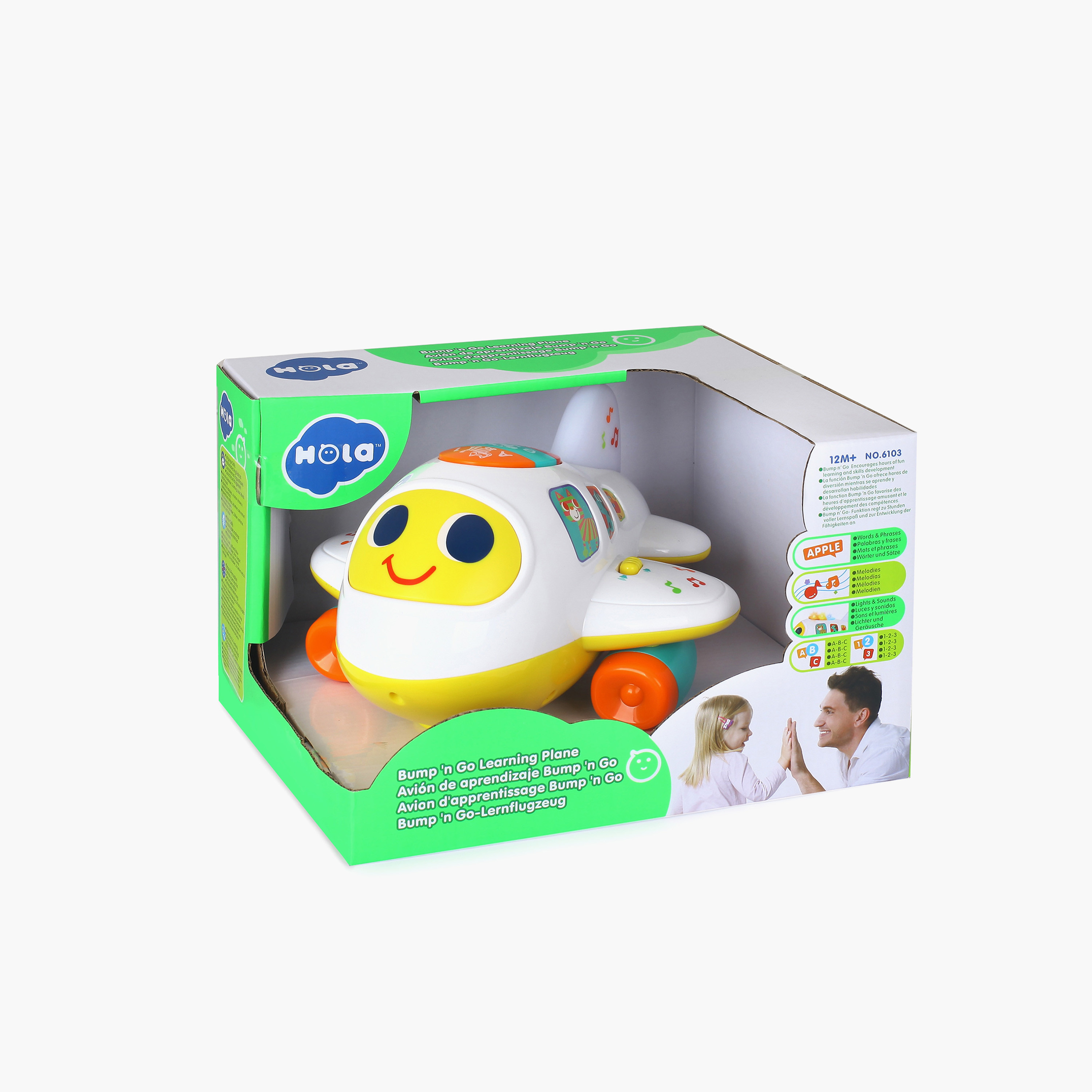 عرّفي طفلك على متعة التعلم مع لعبة الطائرة التعليمية الرائعة هذه. تتميز هذه الطائرة التفاعلية بأضواء وامضة وألحان مرحة، تُحفز حواس طفلك وتشجعه على اللعب التخيلي. تغير الطائرة اتجاهها تلقائيًا عند الاصطدام، مما يوفر له تسلية مستمرة. كما تتضمن أصوات حيوانات وحروفًا جذابة، مما يُعزز نمو الطفل المبكر.