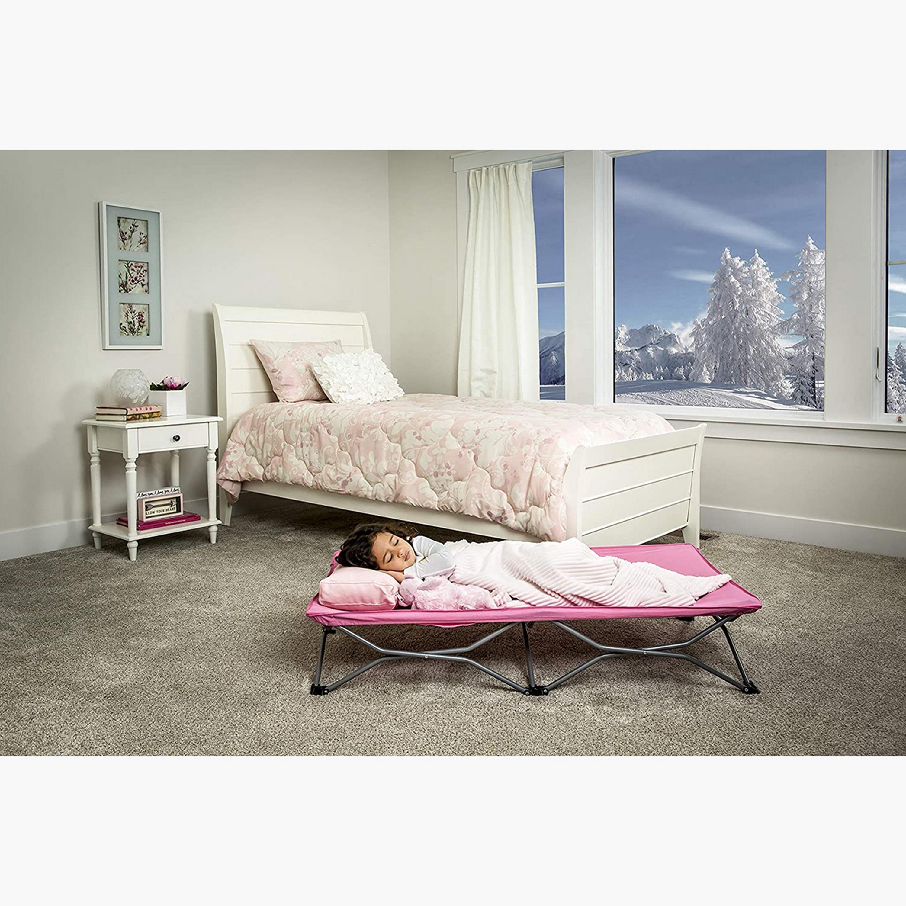 يأتي سرير النوم المحمول هذا مع استخدامات متعددة. نظرًا لأنه محمول، يمكنكِ استخدامه للنوم والتخييم وقضاء يوم على الشاطئ أيضًا. يحتوي على إطار فولاذي متين بالكامل مع بطانة سرير من القماش المقوى. بإطار فولاذي قابل للطي وتصميم خفيف الوزن، يأتي هذا السرير مع شرشف مطاطي يزيد من راحة الطفل أثناء النوم.