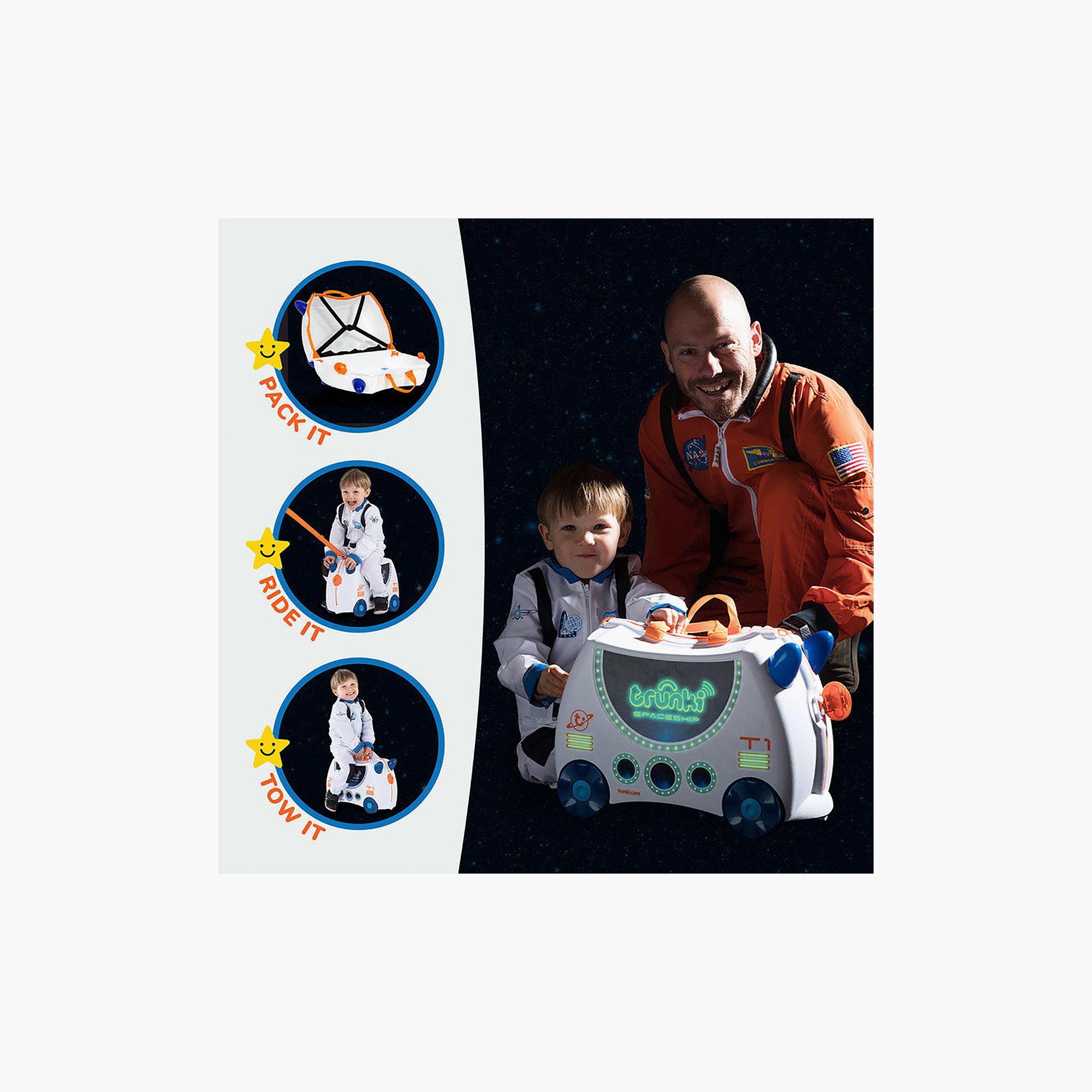 انطلق في مغامرة لا تُنسى مع حقيبة السفر ترانكي المضيئة في الظلام - سفينة الفضاء سكاي! مثالية لرواد الفضاء الصغار، سكاي جاهزة للانطلاق في رحلة مليئة بالمرح، سواء كنت مسافرًا أو تلعب في المنزل. تضيء هذه الحقيبة المبتكرة في الظلام، مما يضفي مزيدًا من الإثارة على أي رحلة. صُممت كحقيبة يد، وهي مثالية لحفلات المبيت، والإجازات المنزلية، وغيرها. بفضل تصميمها المتين، يمكن للأطفال ركوب سكاي وسحبها وحملها بكل سهولة. دع خيال طفلك يحلق عاليًا مع رفيق السفر الرائع هذا، واجعل كل رحلة مغامرة كونية!