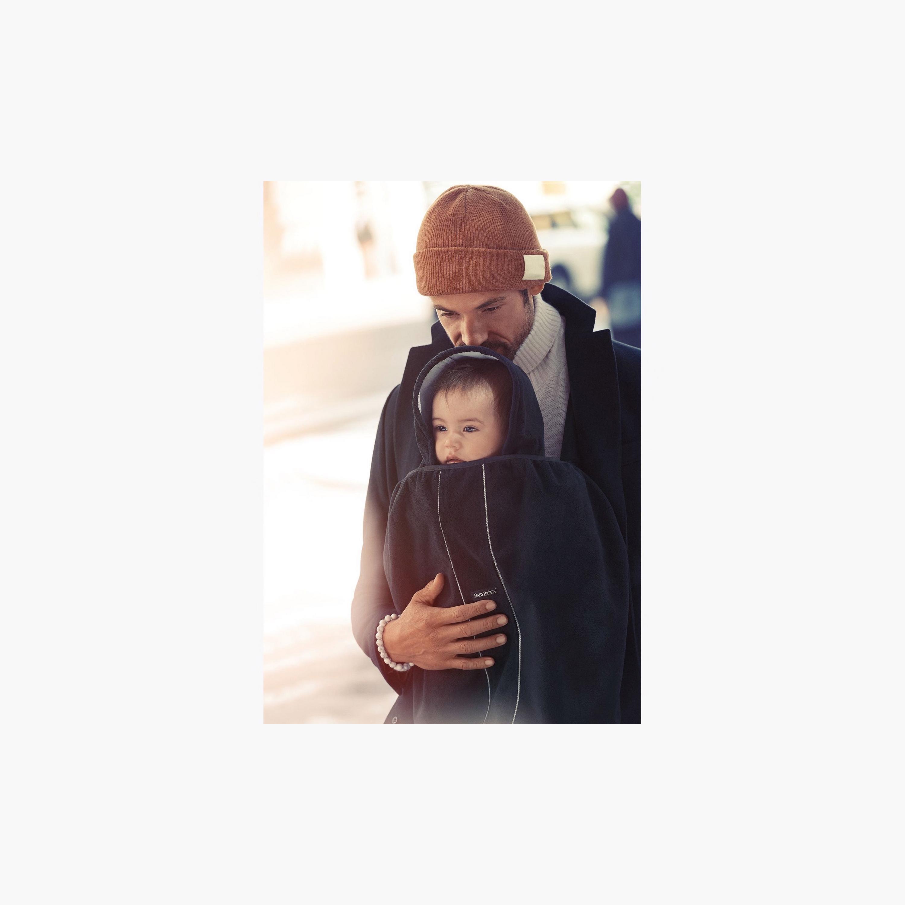 Robust cover in a new design! Perfect when you want to use your baby carrier in wet, cold and windy weather. The outer fabric is water-resistant and windproof while the inner soft fleece lining keeps your baby warm and cosy on chilly days. You can use the cover when babywearing in either the facing-in or facing-out position. it also features an updated design and a button that allows you to adjust the size of the cover to suit a smaller baby. The cover fits all baby carriers from BabyBjorn.