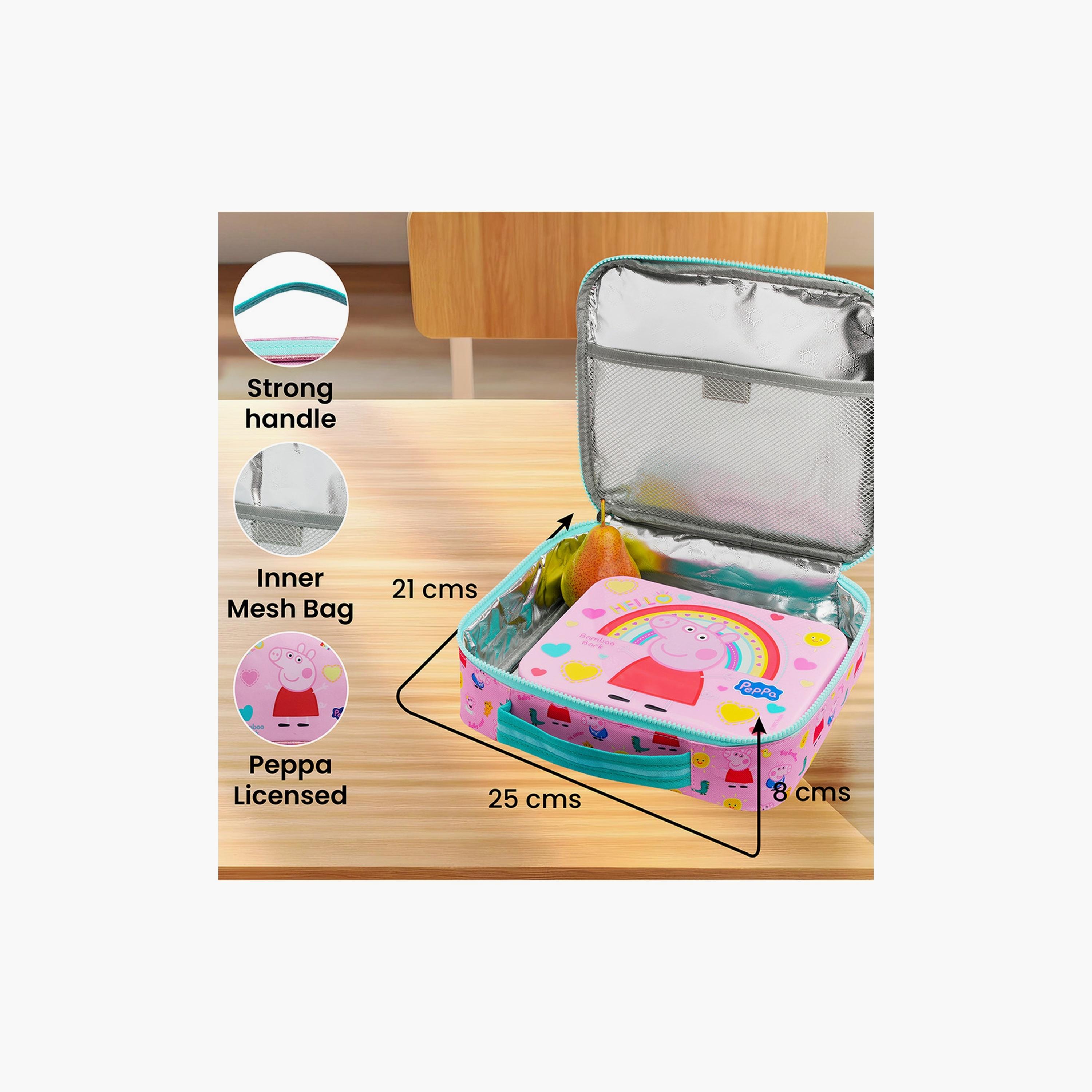 Vibrant Peppa Pig Design: Delight your child with a lunch bag featuring colorful Peppa Pig artwork, adding fun to their daily meals.