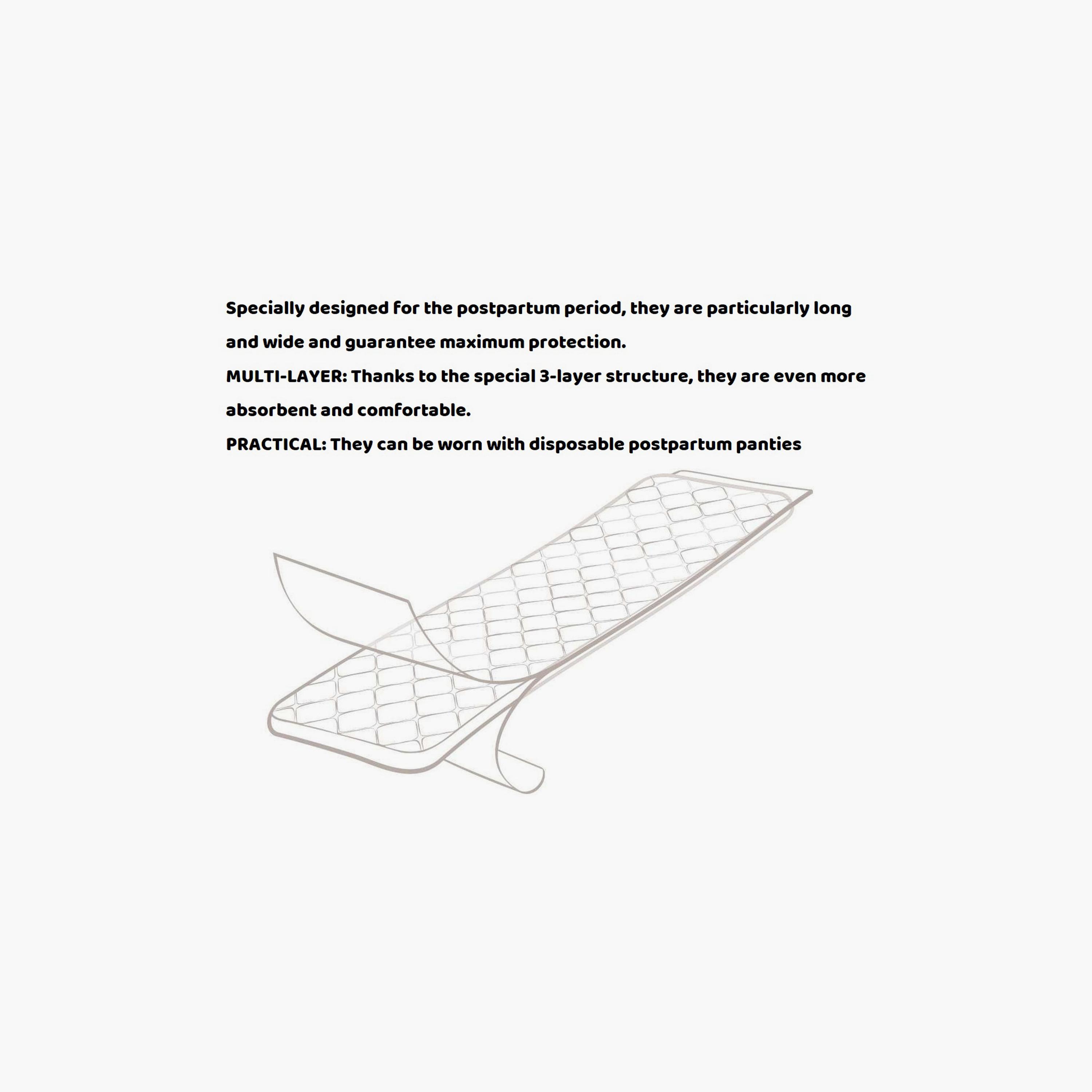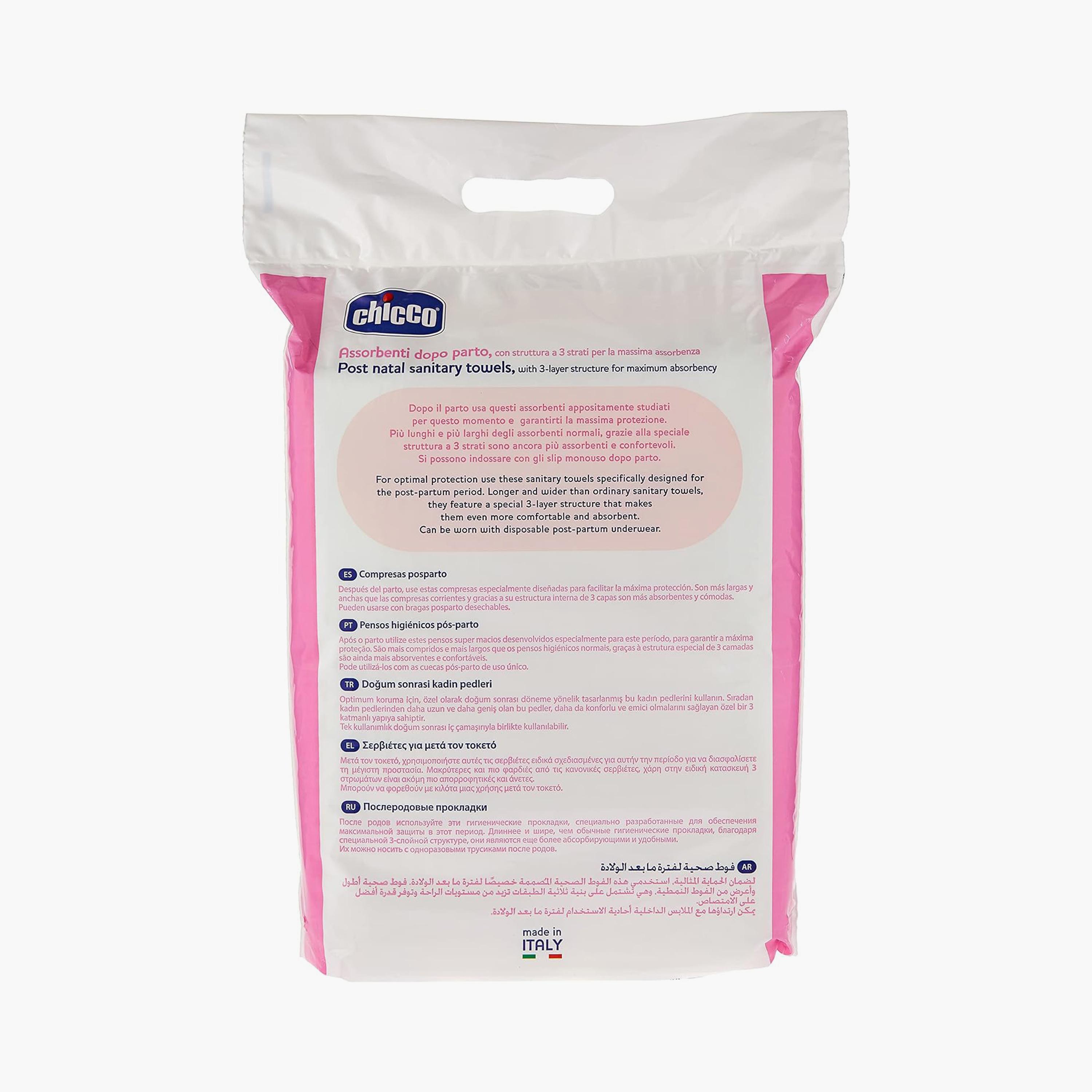 Introducing the Chicco 3-Layer Post Natal Sanitary Towels, designed to provide comfort and protection for new mothers. These towels feature a top layer made from a special non-woven fabric that is both comfortable and hypo-allergenic, ensuring your skin stays dry and irritation-free. The innovative middle layer incorporates a pure cellulose filter film that efficiently disperses liquids across the entire surface, preventing any clotting and enhancing overall absorbency. At the core, the inner layer is crafted with super absorbent cellulose fluff, offering superior moisture retention to keep you feeling fresh and secure. These sanitary towels are compatible with post-natal disposable briefs, making them an ideal choice for postpartum care. Experience unparalleled comfort and confidence during your recovery with Chicco's expertly designed post-natal sanitary towels.