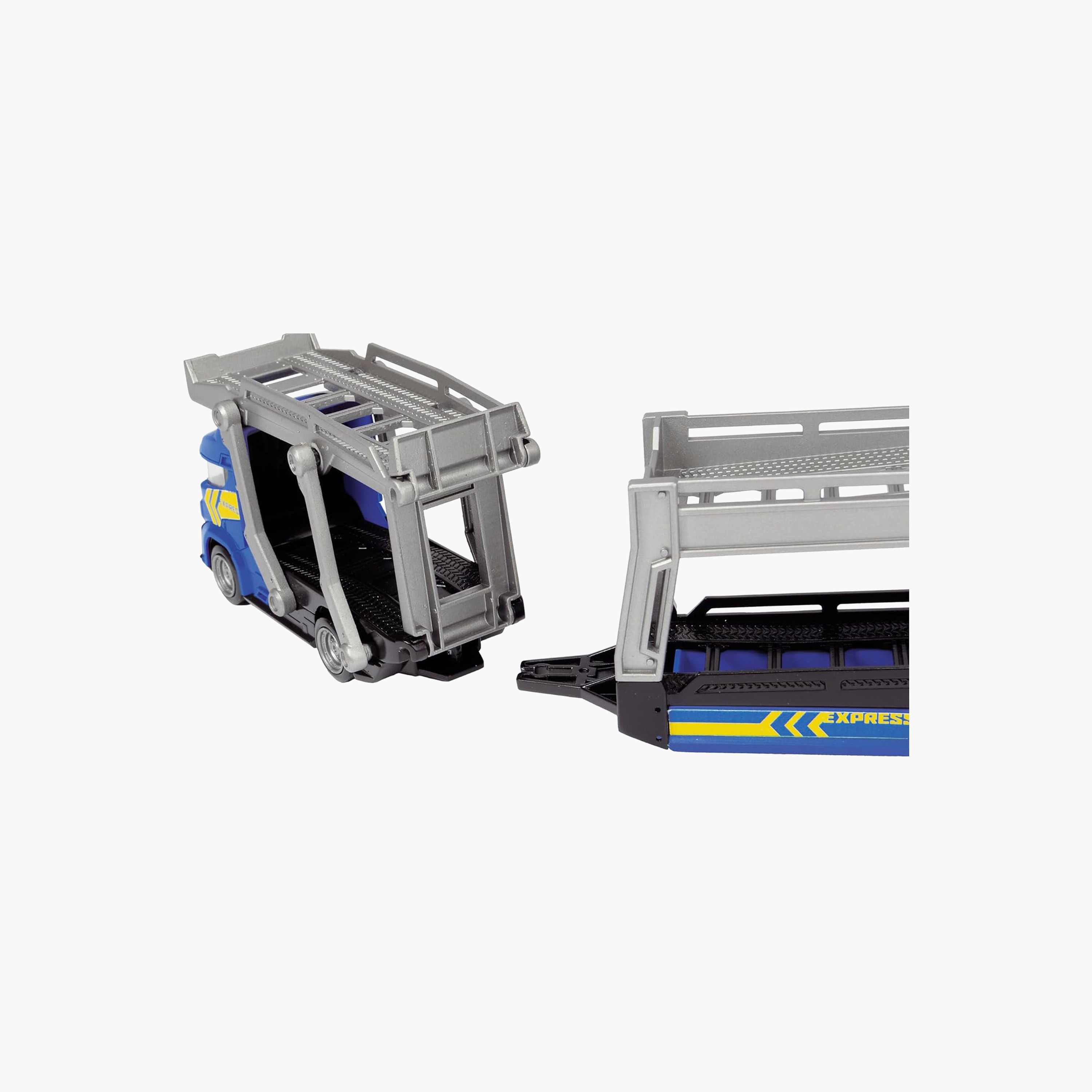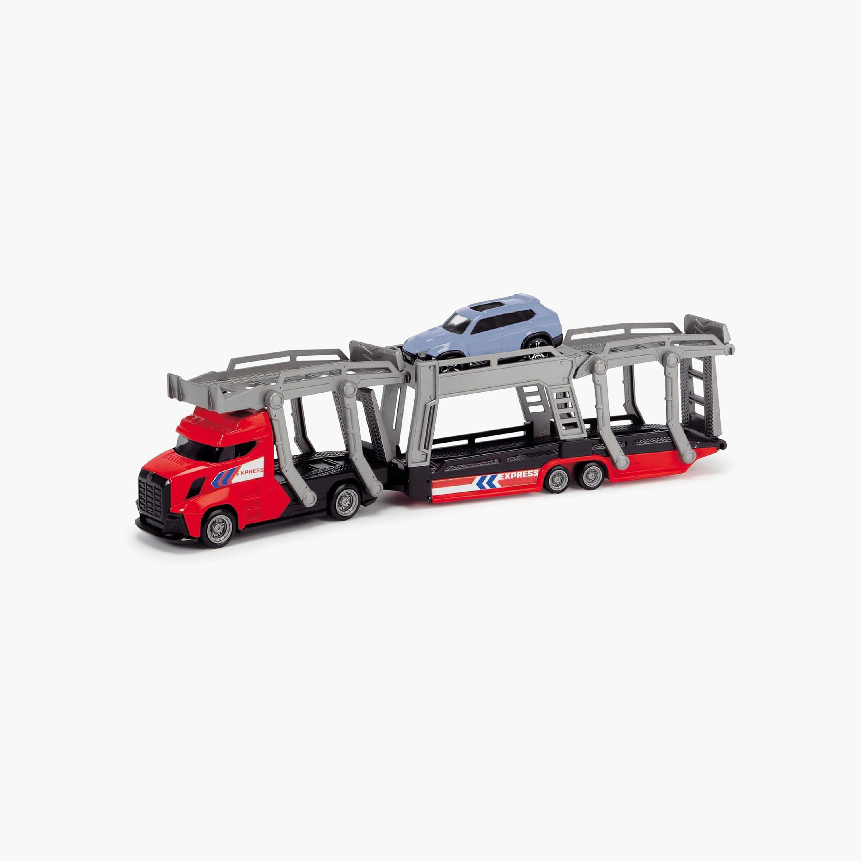 This car carrier transporter toy provides hours of imaginative play for young enthusiasts. The set includes a large, articulated truck with a multi-level ramp system, allowing for realistic loading and unloading of miniature vehicles. Children can develop fine motor skills and spatial reasoning by arranging the included toy cars on the carrier. This durable toy encourages creative storytelling and is perfect for solo play or sharing with friends.