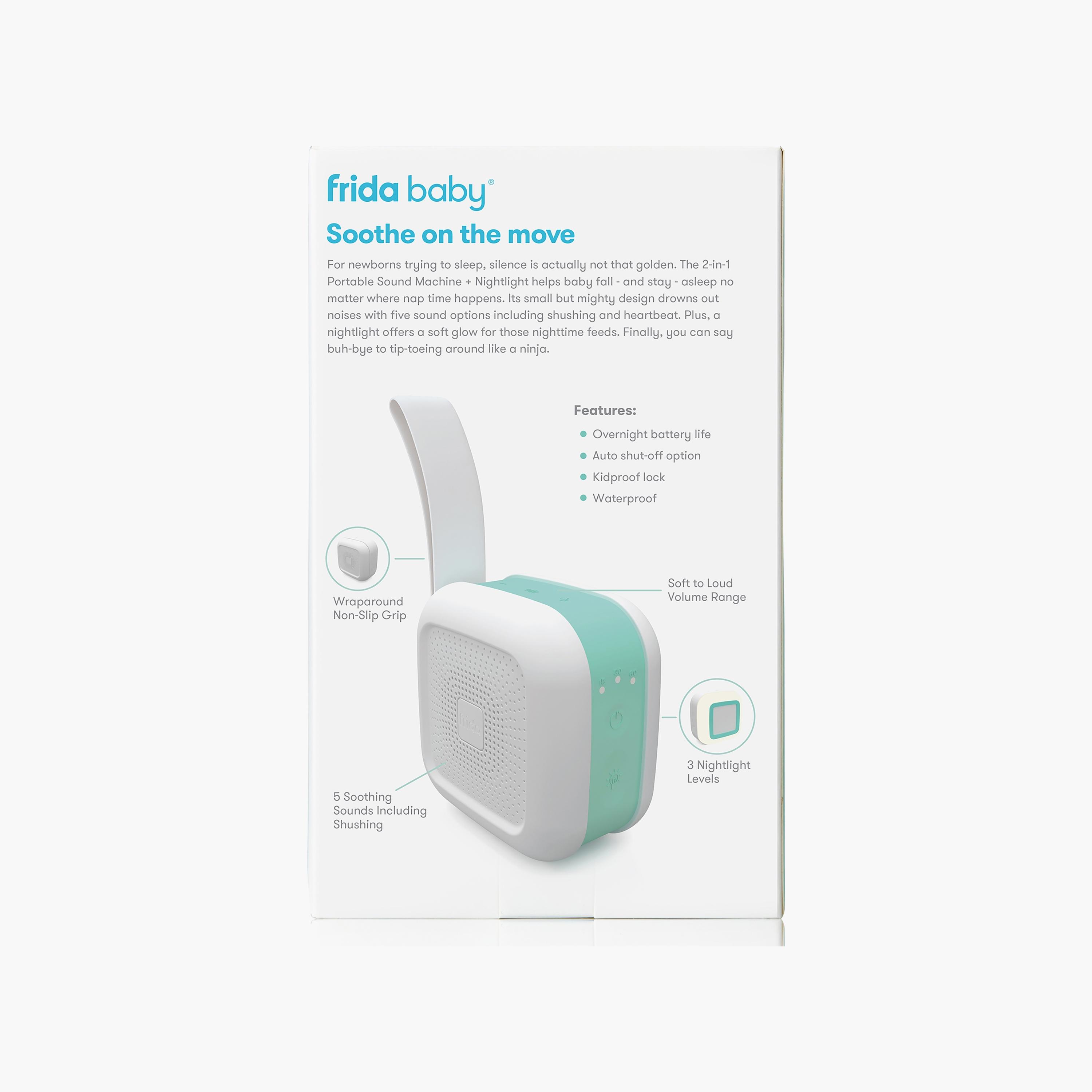Introduce tranquility wherever life takes you and your little one with the FridaBaby 2-in-1 Portable Sound Machine + Nightlight. Its compact design ensures naptime can be anytime, anywhere. Featuring three levels of soft nightlight glow, it's perfect for those midnight feeds. Plus, with its convenient USB Type C charging, this travel-friendly device is a must-have for busy parents seeking a peaceful atmosphere on the go.