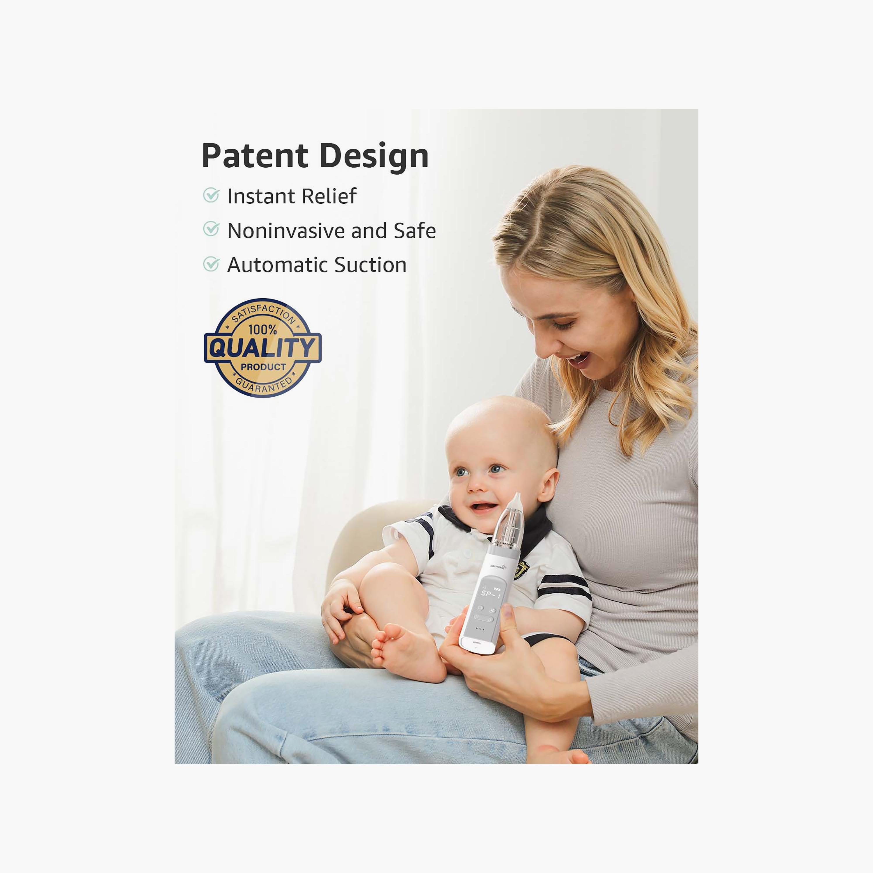 GROWNSY Electric Nasal Aspirator with 3 Silicone Tips – Gentle, Effective Relief for Little Noses. A congested baby can’t tell you how uncomfortable they feel—but you can see it in their restless sleep, reduced appetite, and fussiness. The GROWNSY Electric Nasal Aspirator with 3 Silicone Tips is designed to provide safe, gentle, and effective relief from nasal congestion, helping your baby breathe more easily and sleep more soundly. Combining hospital-grade suction with baby-friendly comfort, it’s an essential tool for every parent’s care kit. Gentle Yet Powerful Suction: This aspirator uses advanced suction technology that’s strong enough to clear stubborn mucus yet gentle enough for newborns. Unlike manual bulb syringes, it provides consistent, controlled suction to effectively remove nasal blockages without causing discomfort or irritation.