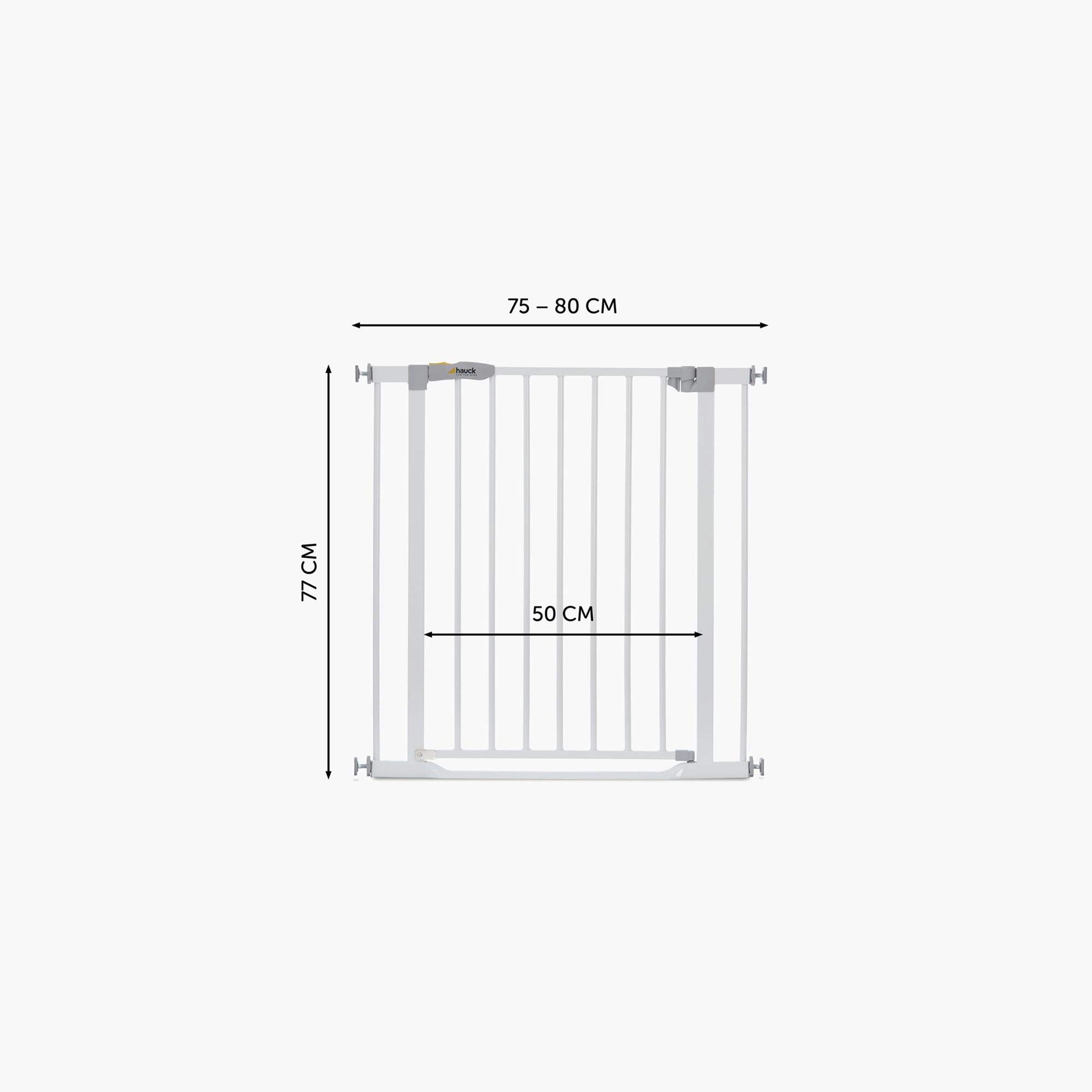 This safety gate must be installed in your home when little ones are around. It is constructed with quality material making it durable and sturdy. It is installed with four pressure points between doors or stairs with a width of 75 cm to 80 cm and doesn't require drilling. The door can be set to open in one or both directions, while the double manual closure mechanism provides optimum security. It is a thoughtful addition to your home.