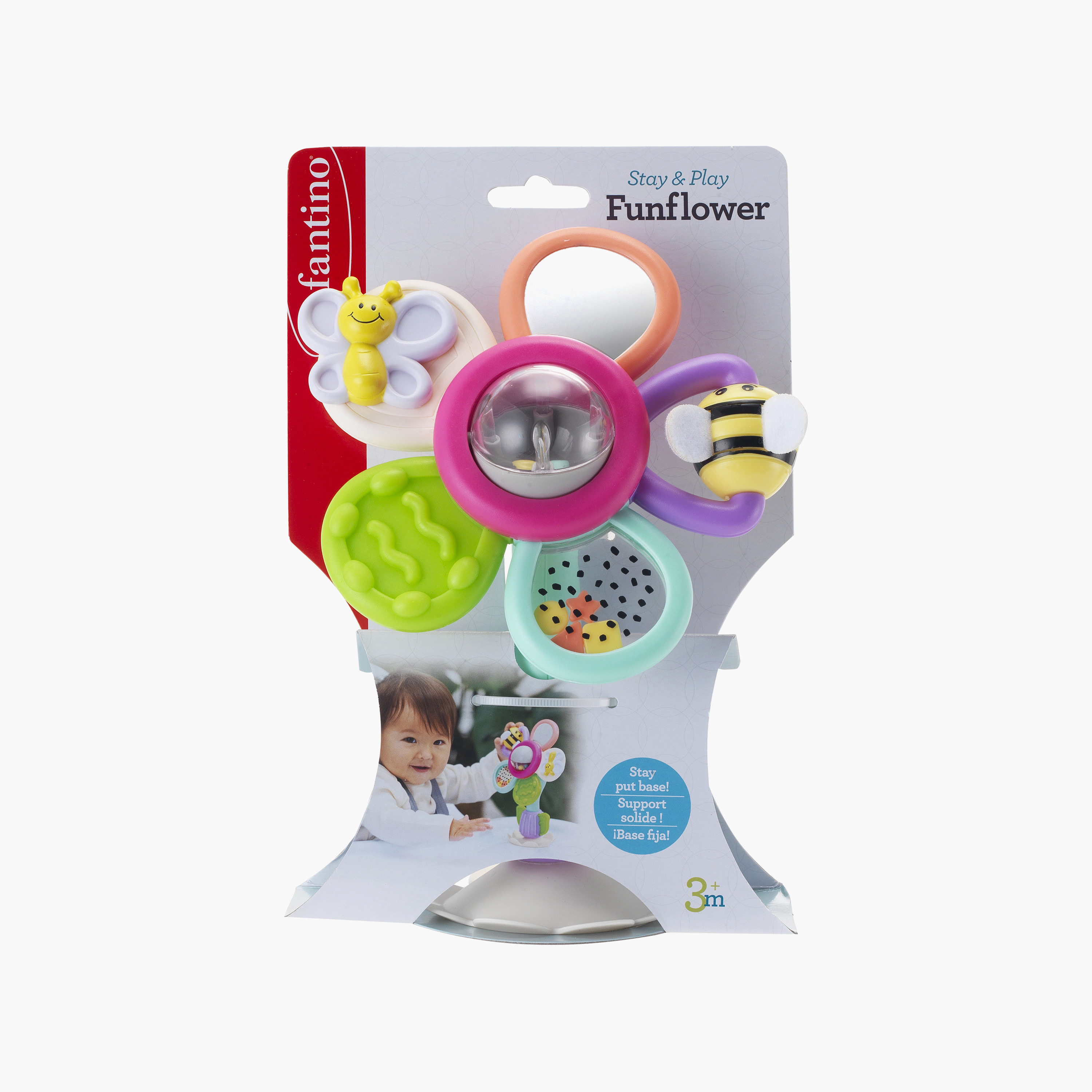 The Infantino Fun Flower Stroller Toy features a vibrant, spinning activity flower that captivates your little one. Its stay-put base easily attaches to most flat surfaces, making it perfect for high chairs and strollers. Designed to keep your busy bee engaged and entertained, this colourful toy offers fun activities that stimulate your child's senses and promote development on the go.