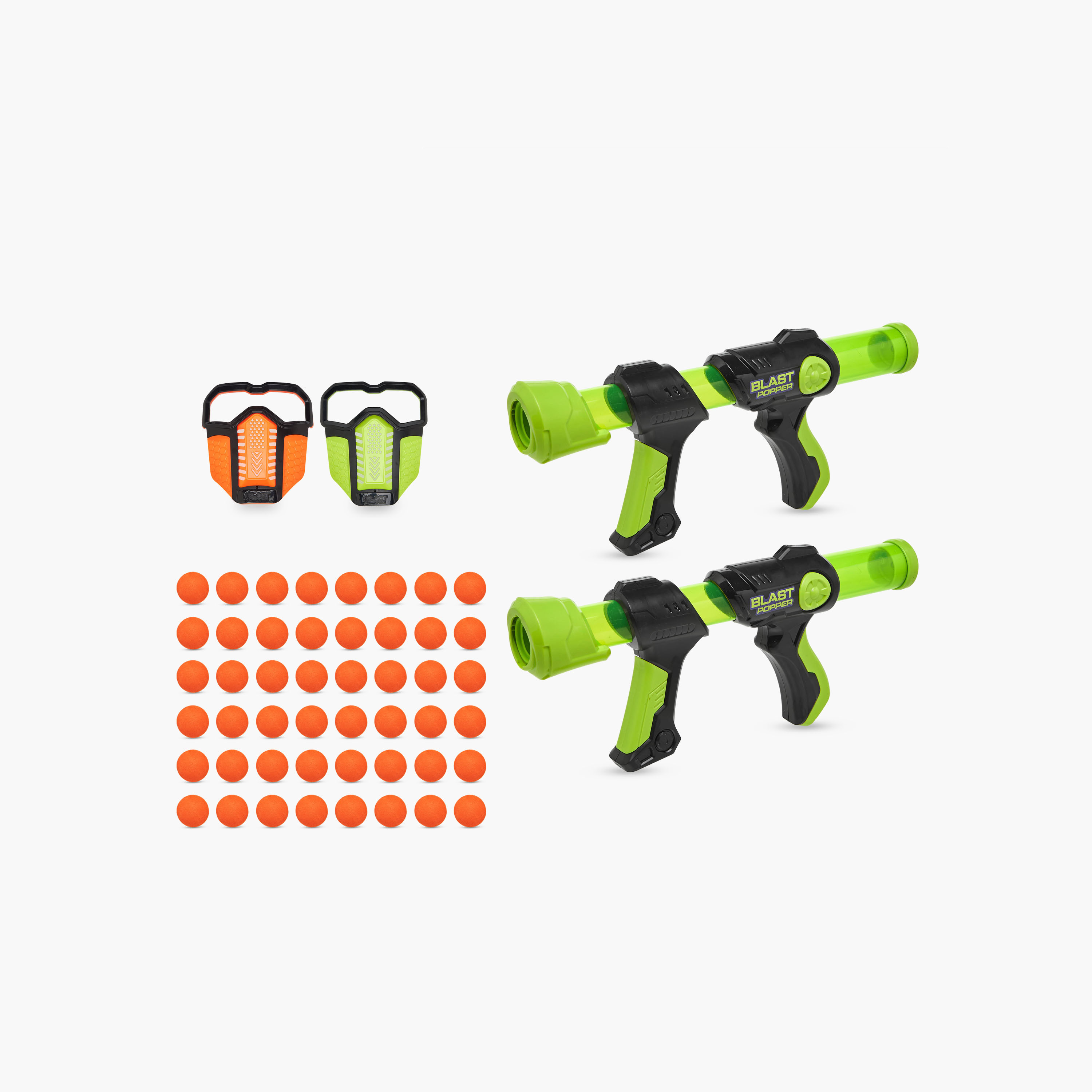 Engage in thrilling play with this exciting set, designed for dynamic outdoor adventures. This set includes two vibrant popper blasters, providing double the fun for children. The easy-to-use pump action mechanism allows for rapid firing, ensuring continuous entertainment. Perfect for youngsters, this toy blaster set encourages imaginative play and improves hand-eye coordination. An accompanying protective mask is included, ensuring safety during play.