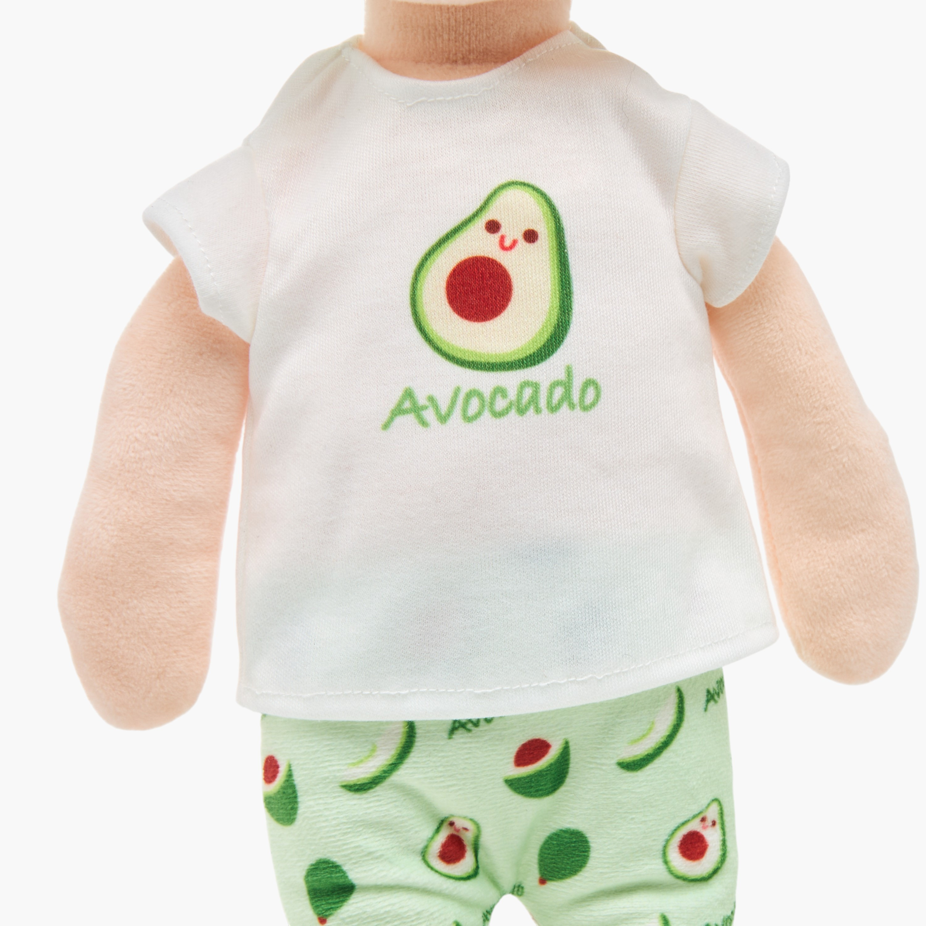 Discover this delightful avocado-themed plush doll, perfect for imaginative play and comforting cuddles. This charming doll features a soft, plush construction, making it incredibly gentle for little hands. Adorned in an adorable avocado-print outfit, complete with a matching headband, this doll encourages creative storytelling and offers a comforting companion for children. Its engaging design and soft texture make it an ideal gift, providing endless hours of joyful interaction and imaginative adventures.