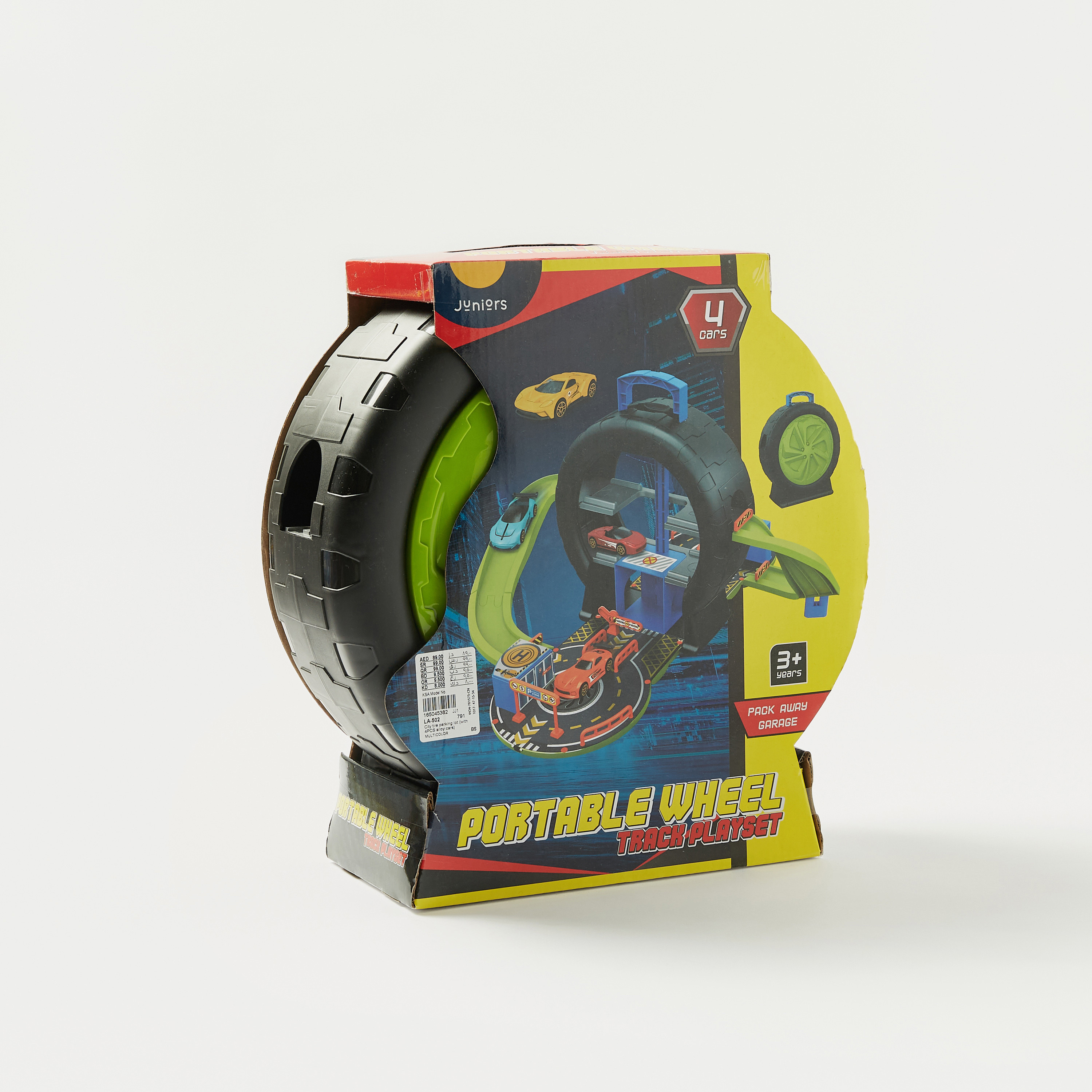 Add to your kid's fun adventures in the playroom with this set. It comes with four alloy cars and a parking lot located in the wheel structure. The items have an exciting city theme that makes creating thrilling scenarios easy. Gift the playset to a special kid for a birthday or happy occasion.
