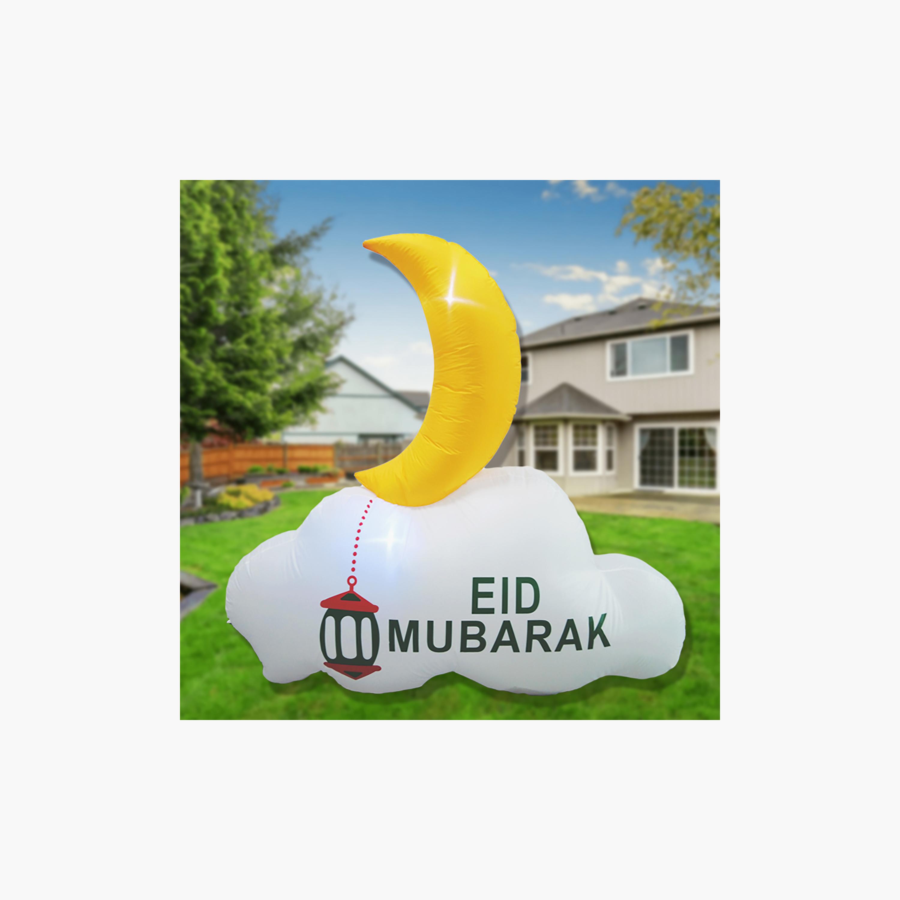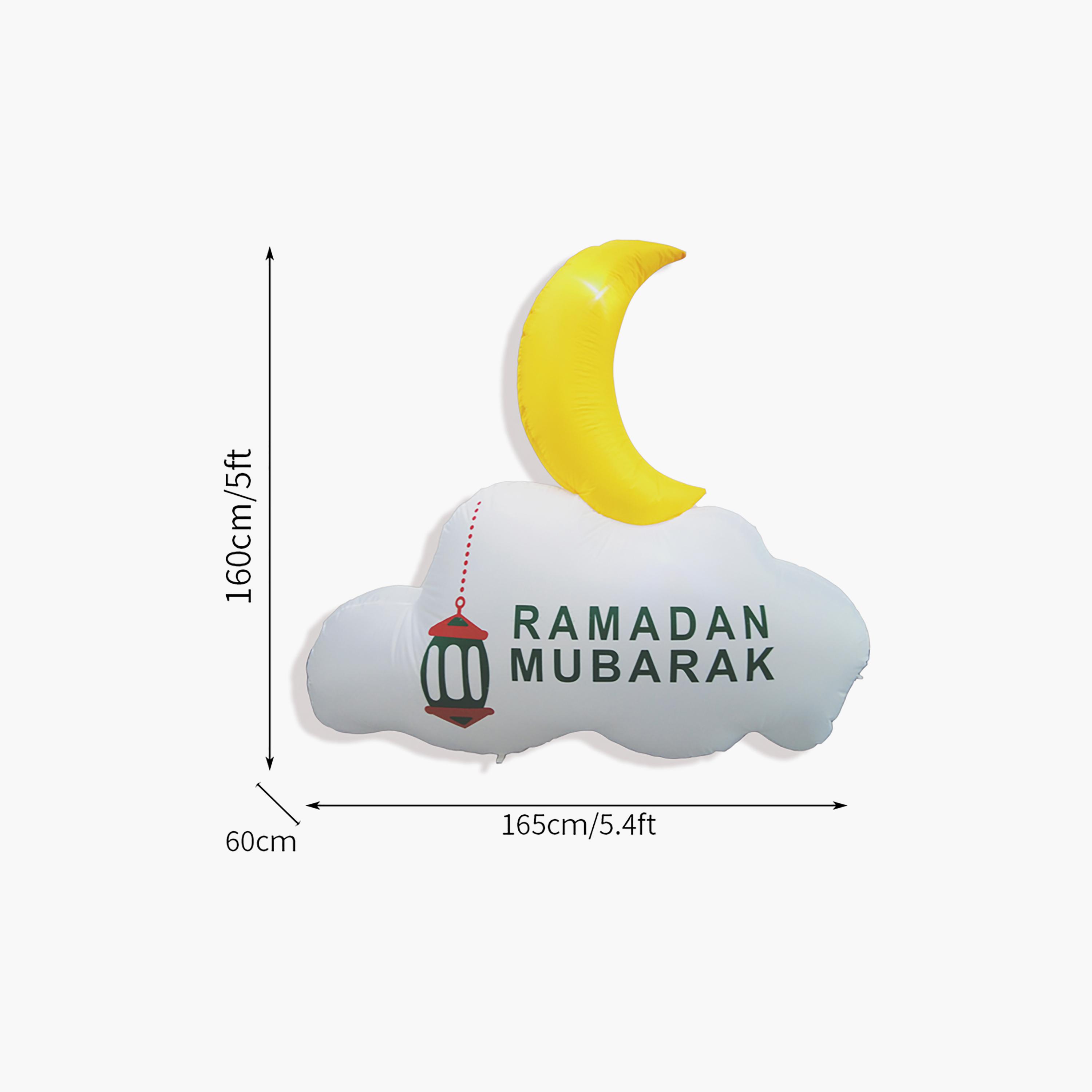 Introducing the Khamsa InflataMoon - Ramadan Inflatable Moon Decor! Illuminate your Ramadan nights with celestial charm. This enchanting outdoor yard decoration boasts a captivating Inflatable Moon Crescent and Cloud design, complete with built-in LED lights and an inbuilt fan for effortless inflation. Standing at 160cm tall and 165cm wide, it creates a magical ambiance in any space. Let the InflataMoon light up your Ramadan festivities!
