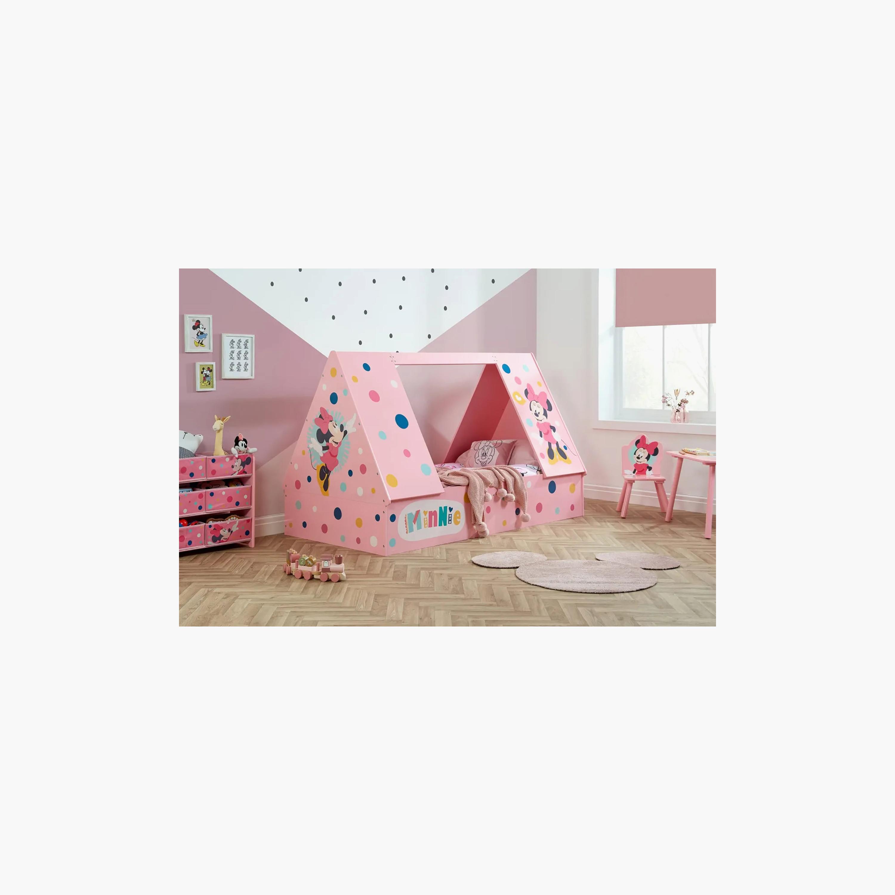 The Disney Minnie Mouse Tent Bed is the ultimate addition to any child's bedroom, offering a cozy sleep space and a playful hideaway. Perfect for fans of the beloved polka-dot Disney character, this bed features fun Minnie Mouse graphics and vibrant polka dots. Painted in a soft pink hue, it combines style and functionality, making it ideal for children transitioning from a cot to a big kids' bed. The tent design provides a unique space for both sleep and play, ensuring your little one enjoys a magical bedtime experience. Transform your child's room with this charming and delightful Minnie Mouse Tent Bed.