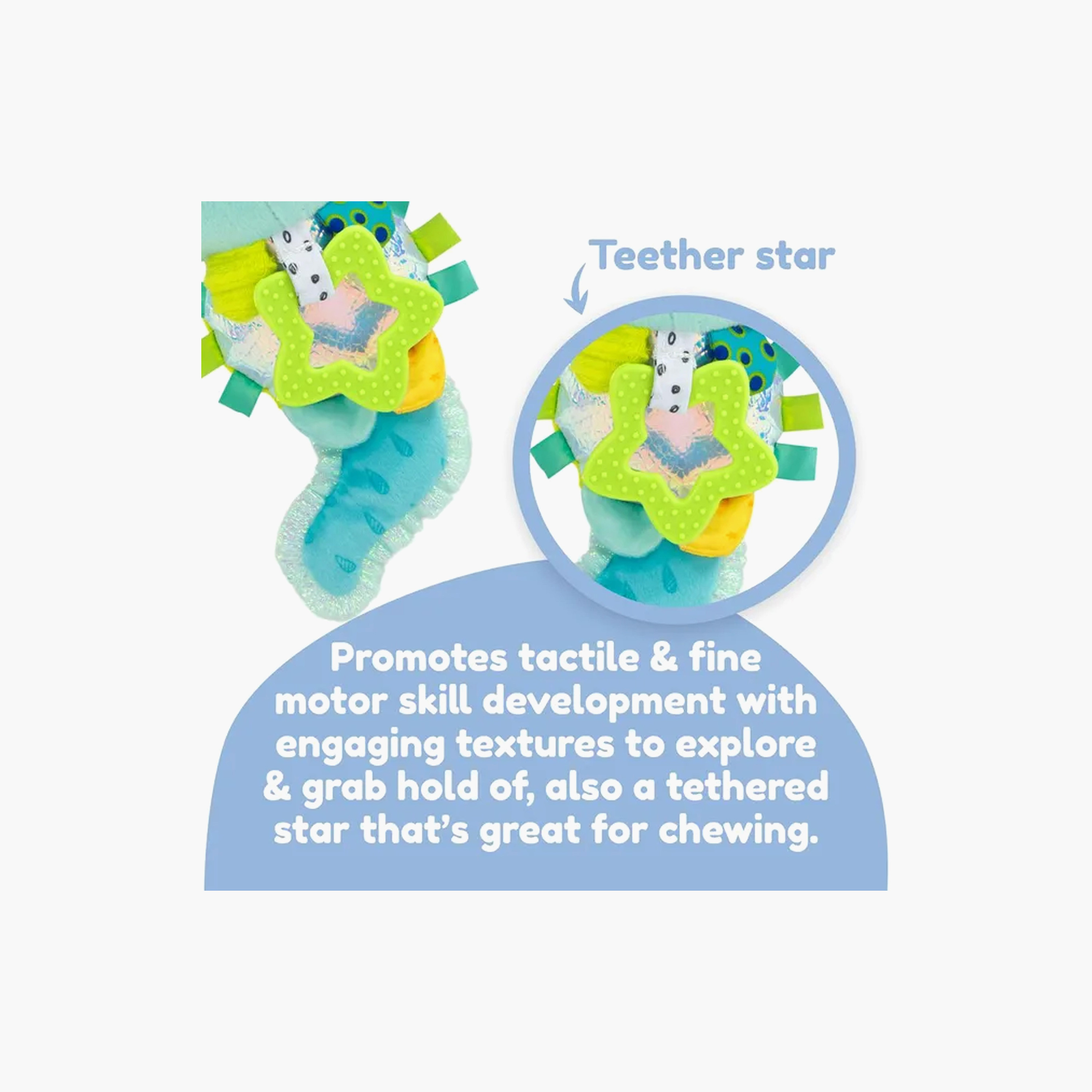 Developmental Toy: Promotes both tactile and fine motor skill development with engaging textures to explore and grab hold of, as well as a tethered star that’s great for chewing