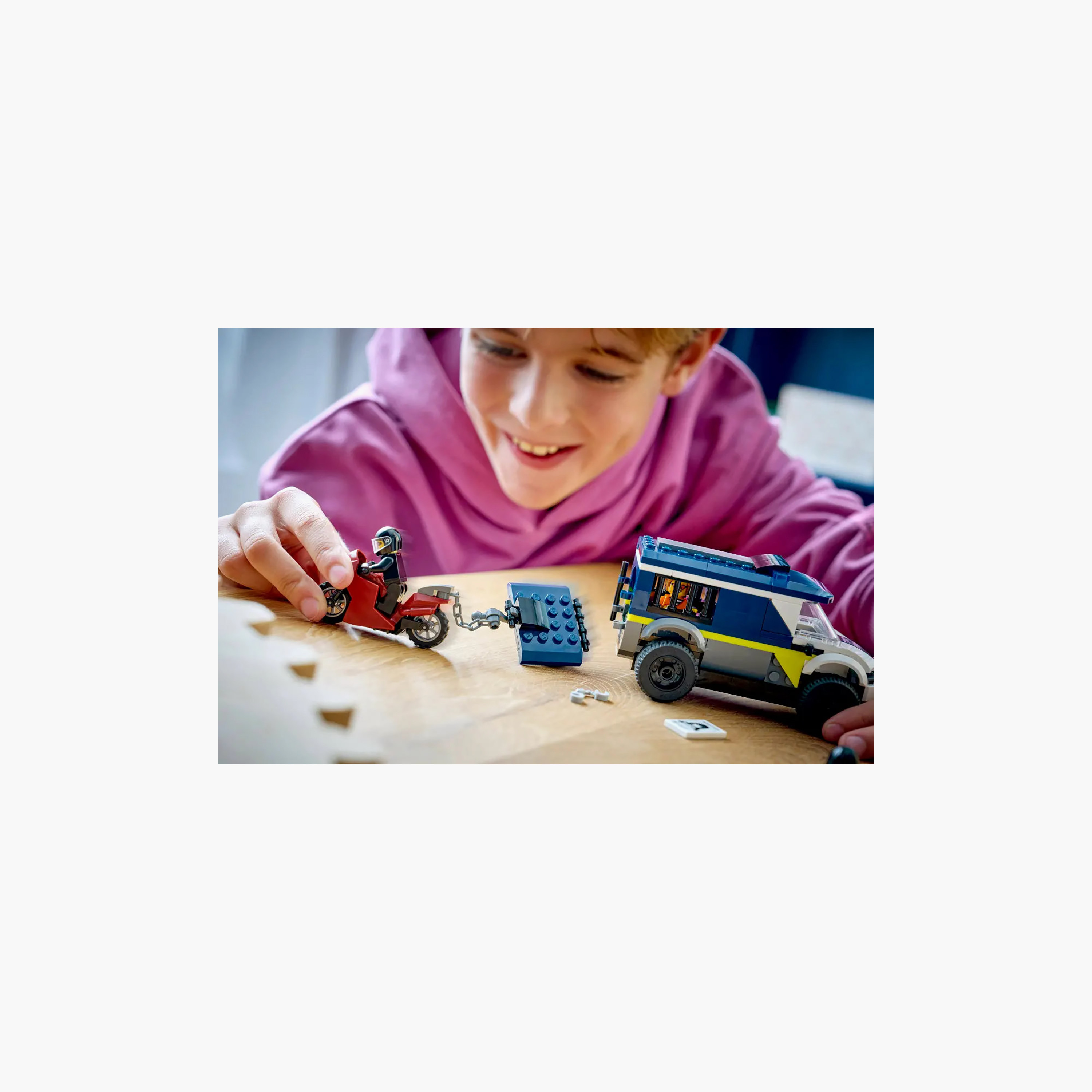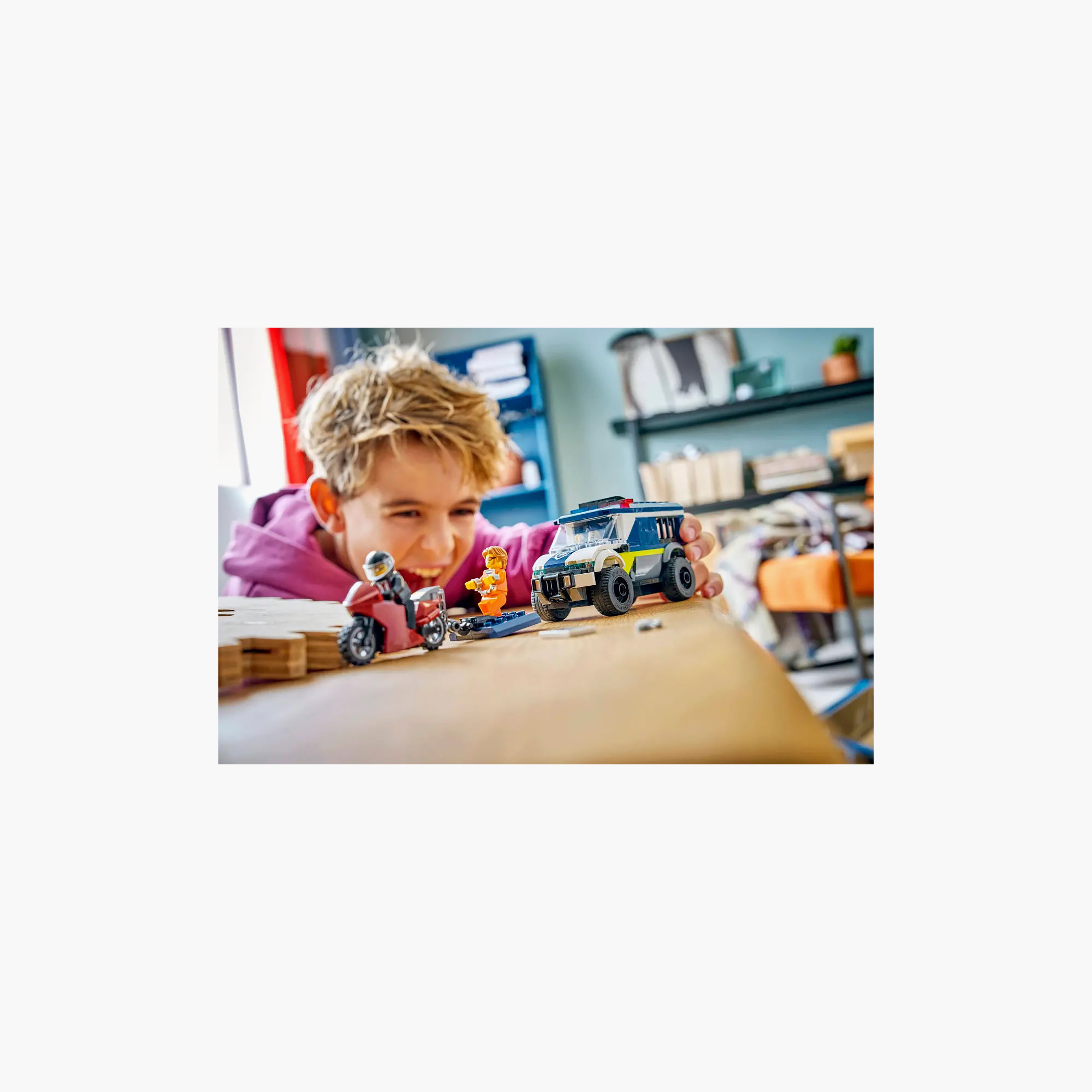 Gear up for exciting breakout adventures with the LEGO City Police Prisoner Transport Van (60479) building set for kids aged 6 and over. The model police truck features a detailed driver’s cab and a jail cell with room for 2 crooks. Kids can use the toy motorcycle with its chain and hook to pull the door from the cell. Just add the police officer and 2 crook minifigures for epic jailbreak role play.