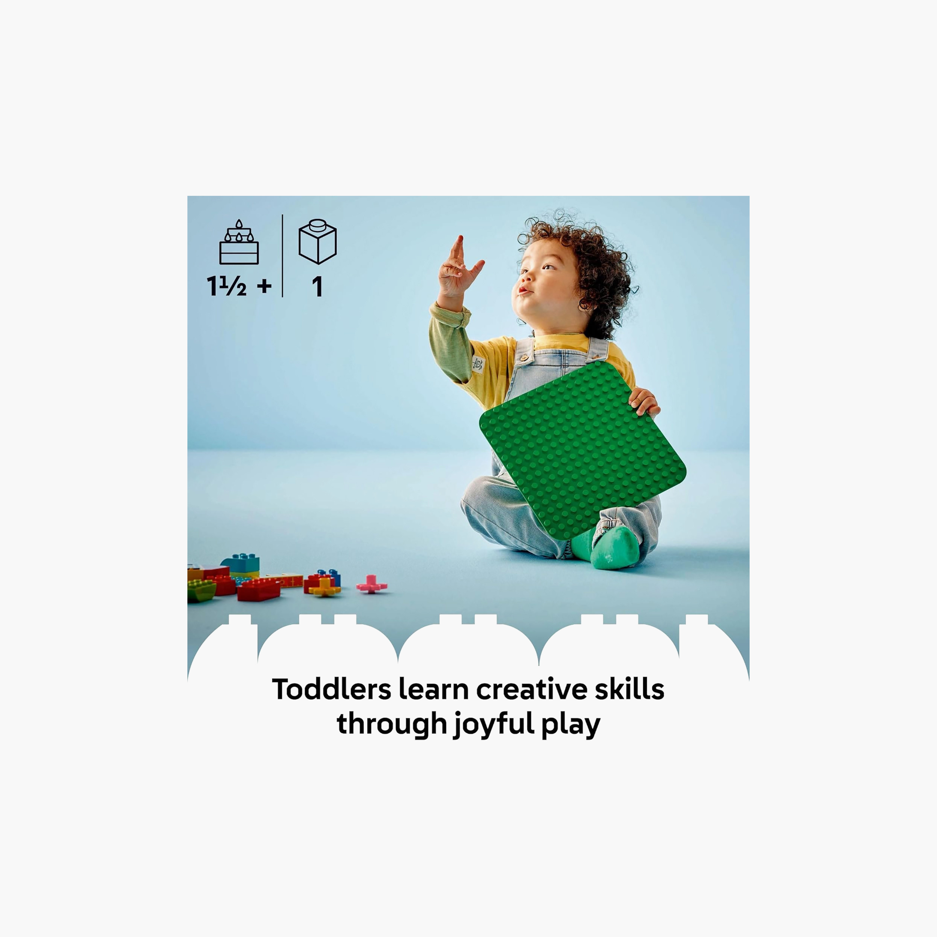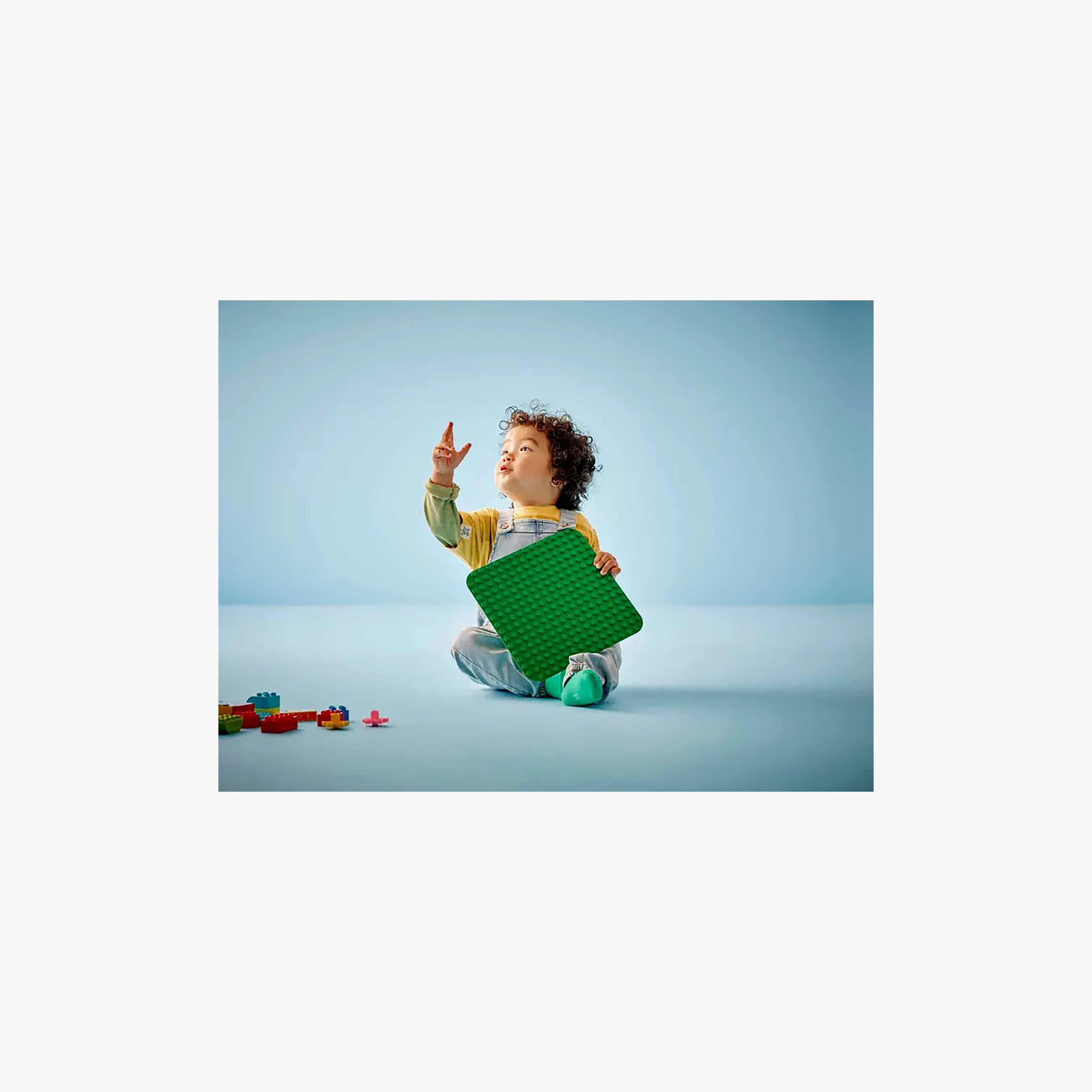 This 16x16-stud green kids’ display base, measuring over 25 cm (9 in.) square, is the ideal starting point for toddlers’ creative play. It holds bricks firmly at any angle (even upside down!) and opens up an endless world of imaginative play possibilities: from grassy gardens to exotic jungles and steep mountainsides to cool, green, flying machines. And, when the building stops, the LEGO DUPLO baseplate gift provides the perfect solution for a collapse-free way to transport and display kids’ creative building.