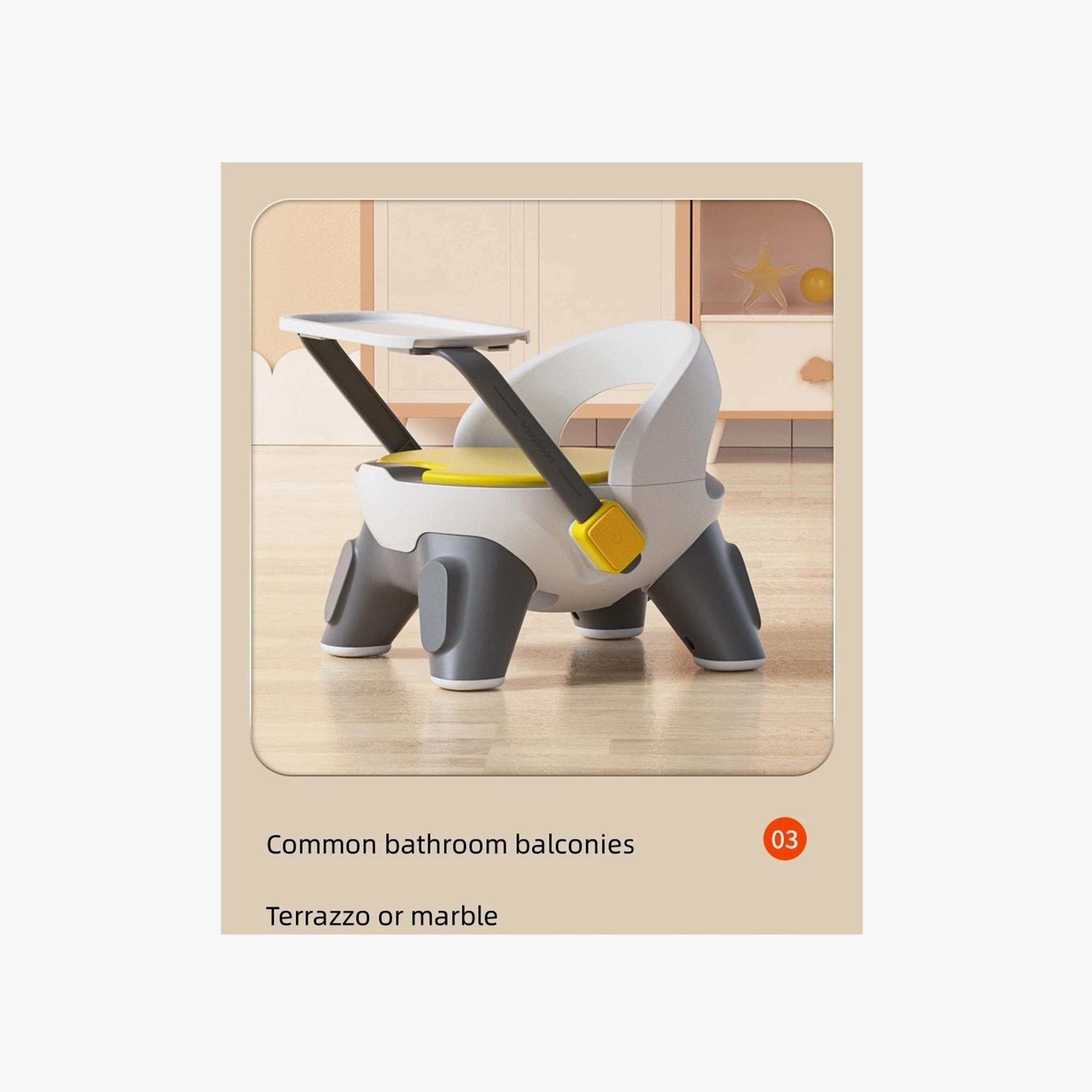 Ergonomic and Comfortable: Features a comfy backrest that supports and promotes healthy spine development in babies, ensuring they sit comfortably while learning and playing.