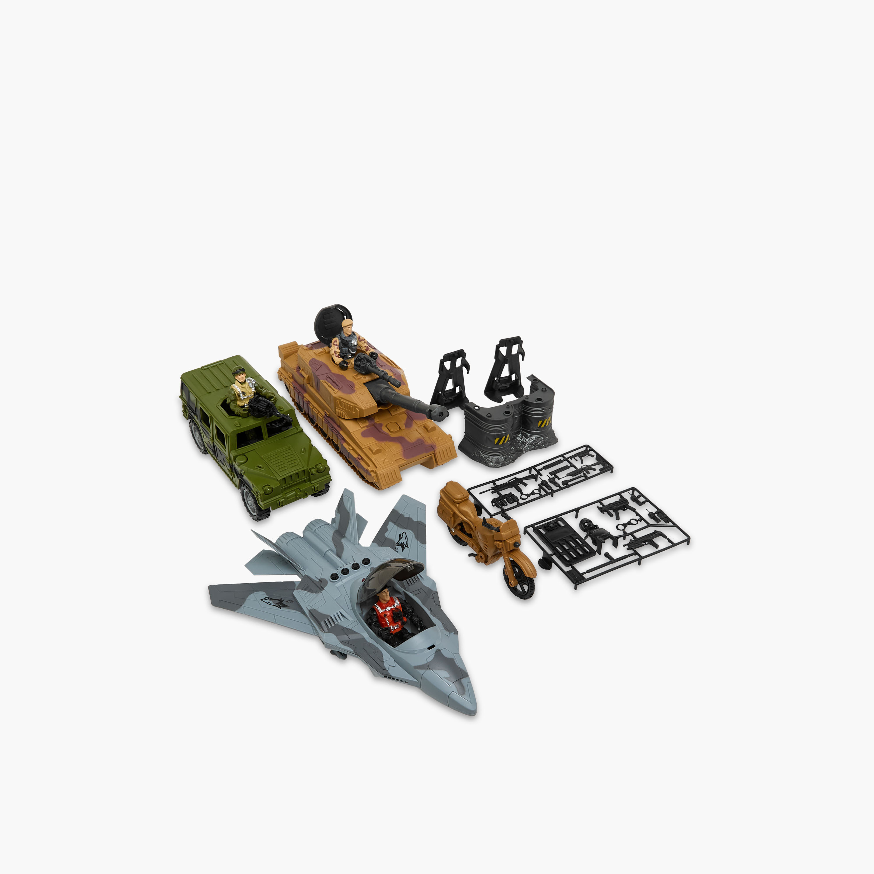 Bring the battlefield to your child's room with this military playset. This set comes with everything your child needs to create exciting adventures, including a tank, aircraft, and soldier figures. The set is made from durable materials for long-term use.