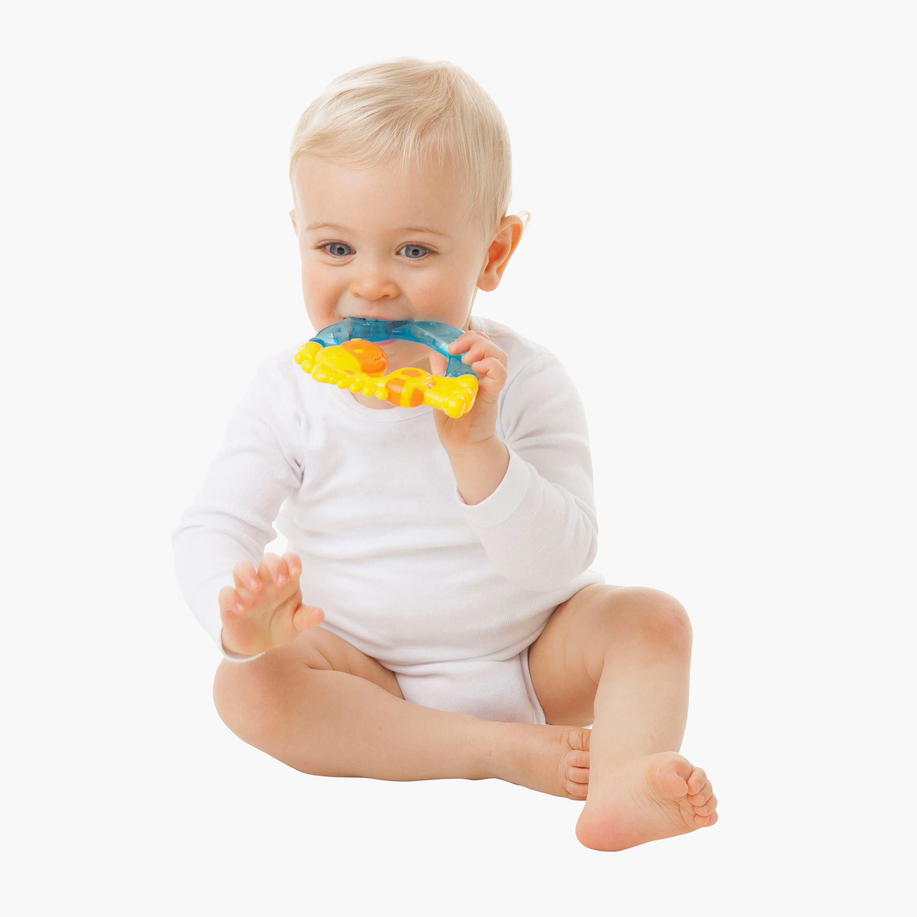 Soothe your baby's sore gums with the Playgro Jerry giraffe water teether. Designed to provide gentle relief during the teething process, this adorable giraffe-shaped teether is easy for little hands to hold and features fun textures for added comfort. The giraffe-shaped design is perfect for little hands to grasp and hold, encouraging fine motor skills development.