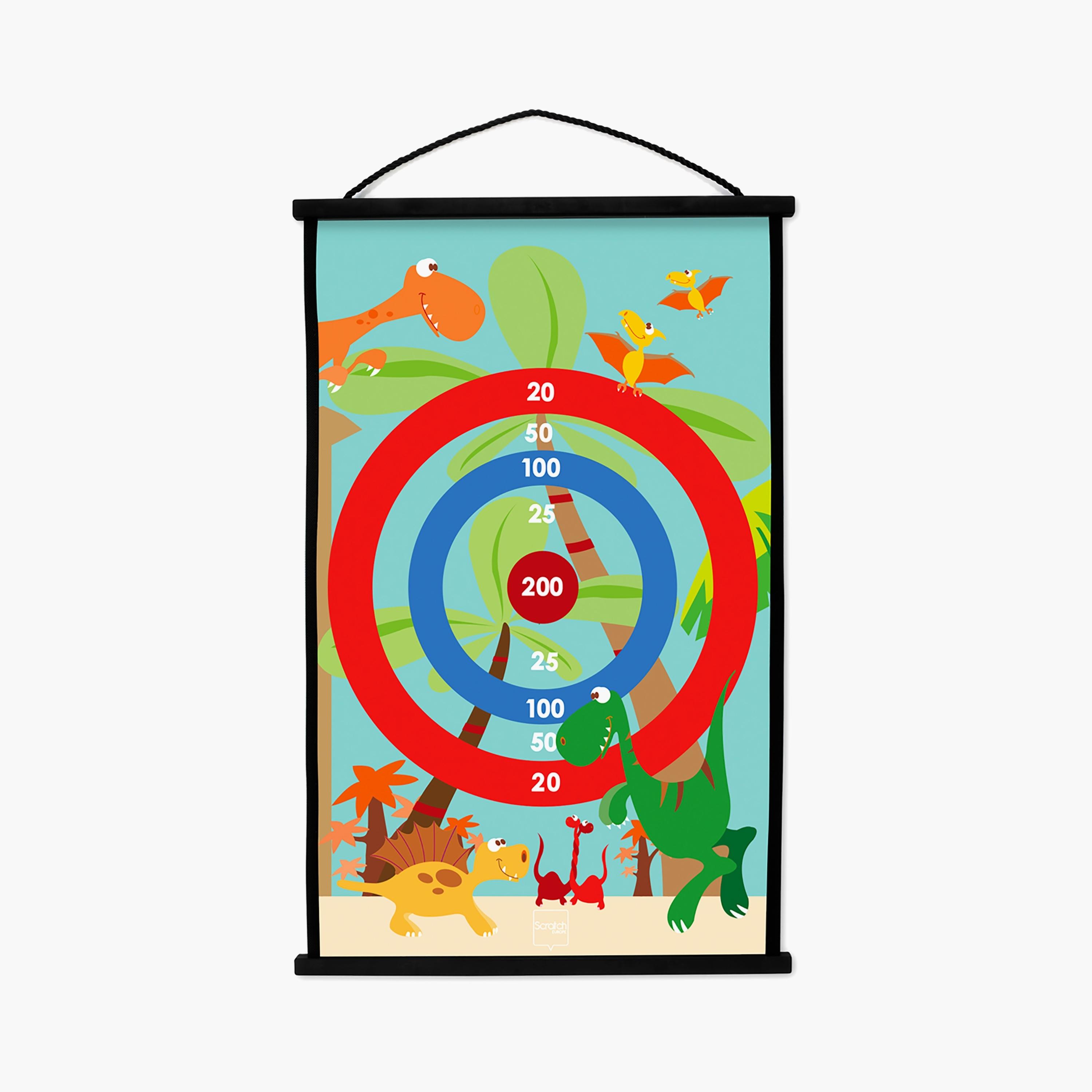 Unleash your inner Robin Hood with Start To Dart Dino World! This engaging darts game, suitable for indoor and outdoor play, comes with six lightweight, easy-to-throw rubber darts. The double-sided dartboard features charming illustrations and sticks firmly to any smooth surface. The game is safe for children, with darts that have no sharp points and leave no marks. It's conveniently packaged in a sturdy box for compact storage. Start To Dart not only provides endless fun for the whole family but also enhances children's hand-eye coordination and mental arithmetic skills. Brought to you by Scratch Europe, the leading brand in children's dartboards.