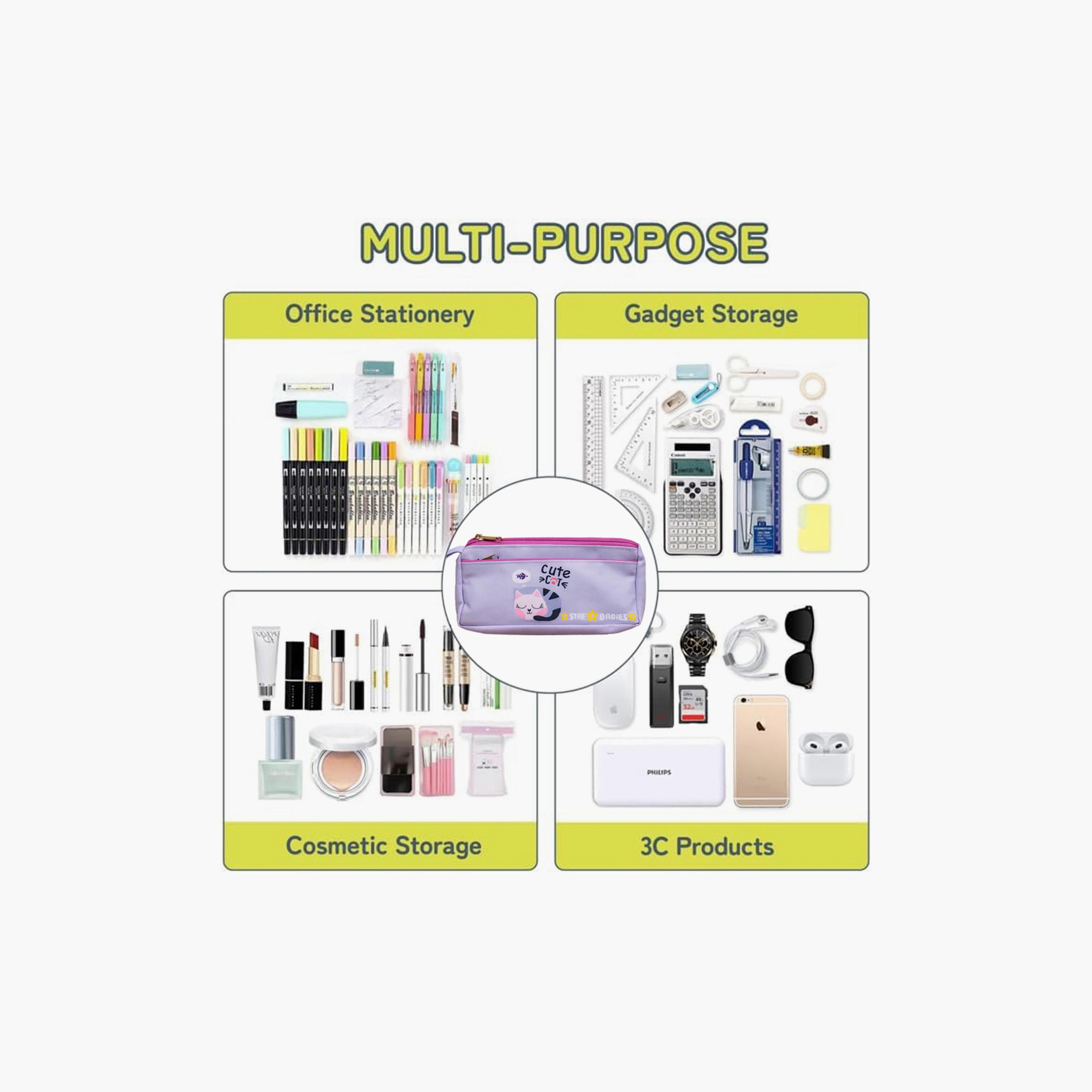 Introducing the Star Babies Cute Cat Print Pencil Case, a stylish and functional accessory for your child's school experience. Made from premium materials, this durable pencil case features vibrant cat prints that kids love. Its compact size ensures easy portability, fitting seamlessly into any school bag while keeping stationery organized. The dual-zipper design offers ample space with two compartments, perfect for storing pens, pencils, and more. Smooth, wide-opening zippers provide quick access, making it user-friendly for little hands. Lightweight and shock-resistant, this pencil case keeps supplies safe and secure. The bold, playful design is a favorite among young students, combining durability with fun. A must-have for back-to-school essentials, the Star Babies Pencil Case blends practicality and style, ready to simplify your child's school life.