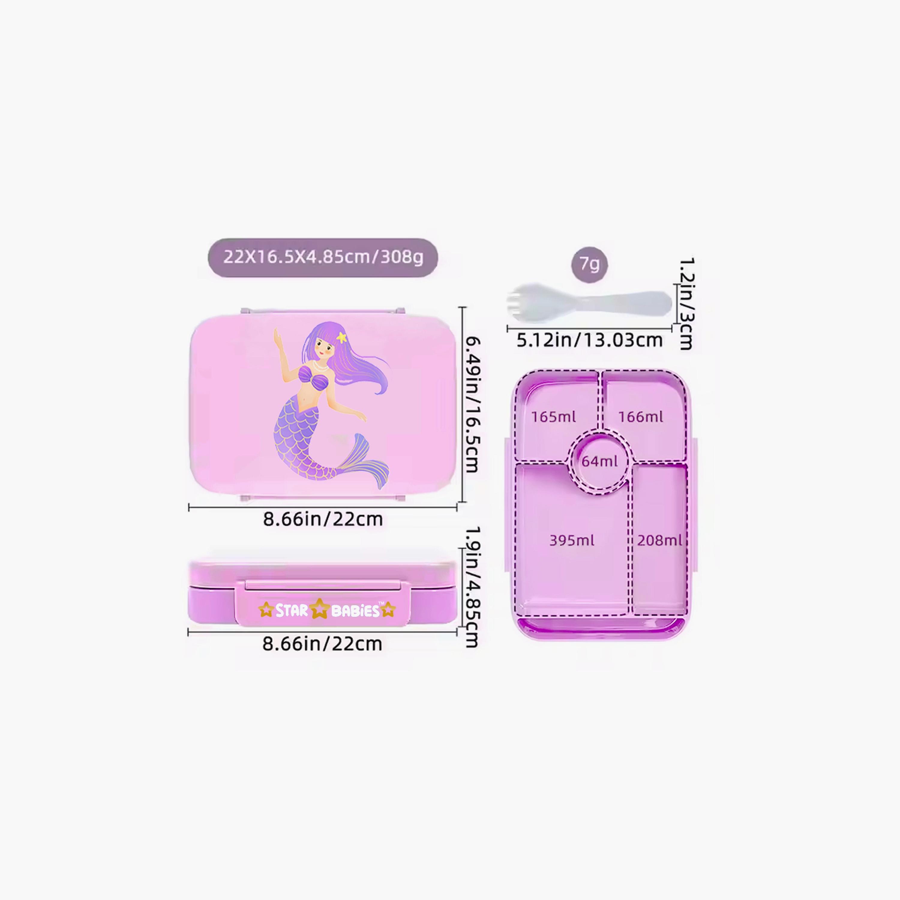 Introducing the Star Babies Little Mermaid Print Lunch Box with Spork, a delightful solution for making mealtimes fun and convenient. This jumbo-sized bento lunch box is perfect for moms who want to pack both hot and cold foods without the hassle of multiple containers. With a generous 998ml capacity, it offers ample space to store meals for the entire school day, making it ideal for kids and teens. The lunch box features four smart compartments to keep food separated and fresh, promoting a balanced diet. Its leak-proof and spill-safe design, complete with an airtight lid and secure locks, ensures no messes in school bags. Made from Tritan plastic-free, BPA-free material, it is safe, durable, and hygienic, providing safe care for every meal. The Little Mermaid print adds a touch of magic, while the vibrant colors make it a stylish choice. Keep food warm for 5-7 hours and cold for at least 10 hours, making it the perfect companion for all-day meals.