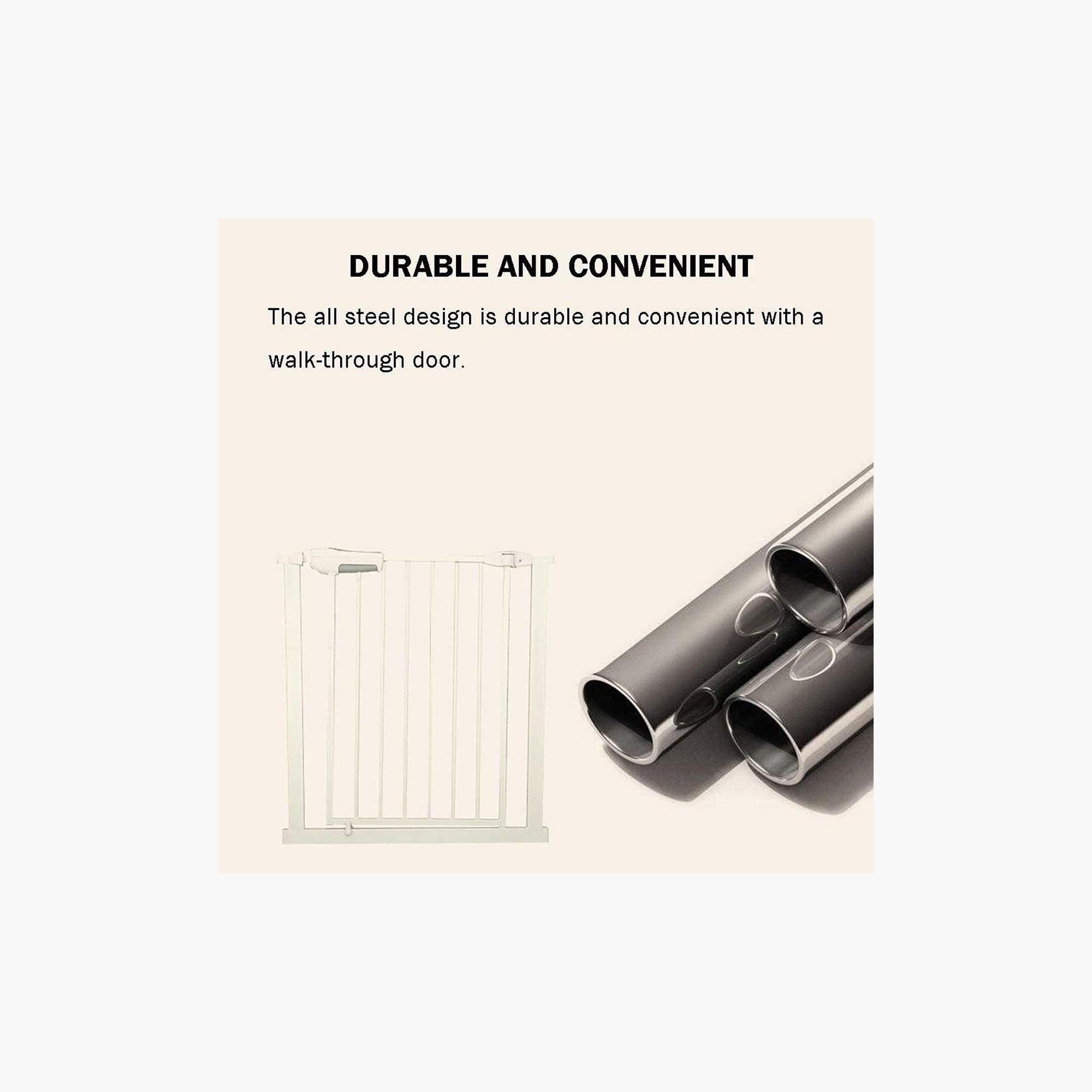 For Parents wanting the option to use their gate either at the top of the stairs or in standard openings, this slide and lock gate is the perfect purchase. With easier than ever installation, this gate provides a secure barrier to keep children safe. The high-grade material ensures durability.