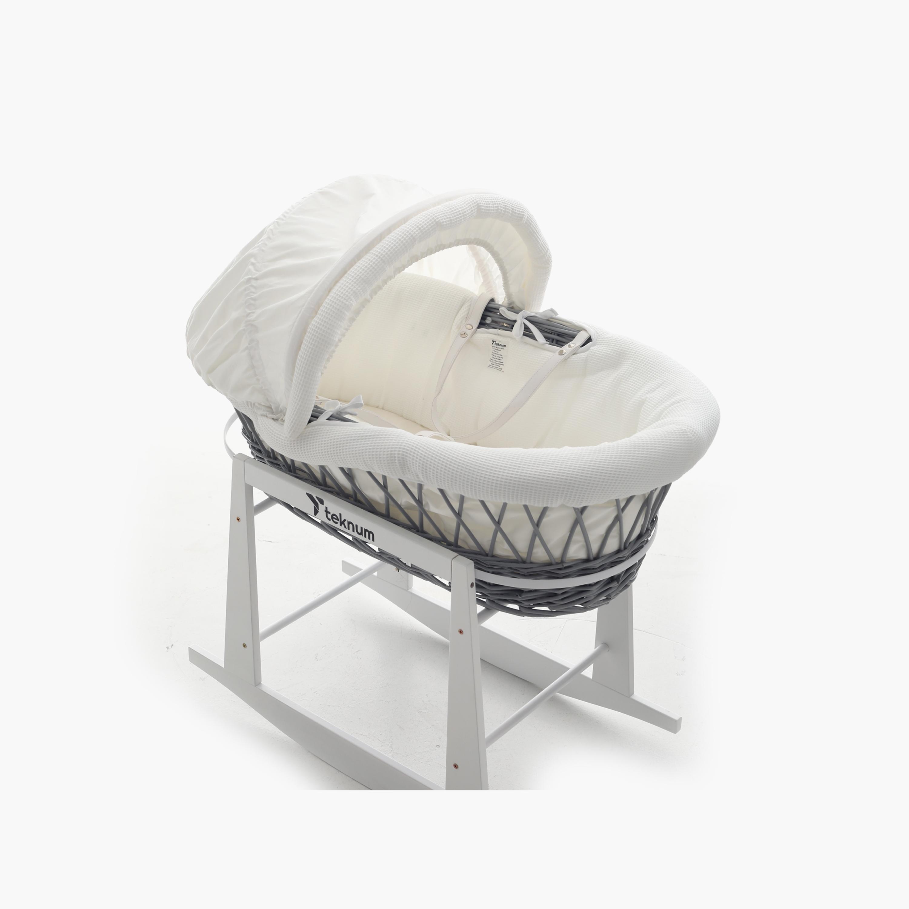 Comes complete with detachable & adjustable Canopy, Liner, Quilt, Mattress and can be paired with Teknum Wicker Pod Moses Basket Rocker Stand. Adjustable hood that's perfect for creating a cozy sleeping space for your precious little one. Do not use the coverlet in combination with sleep bag or blanket.