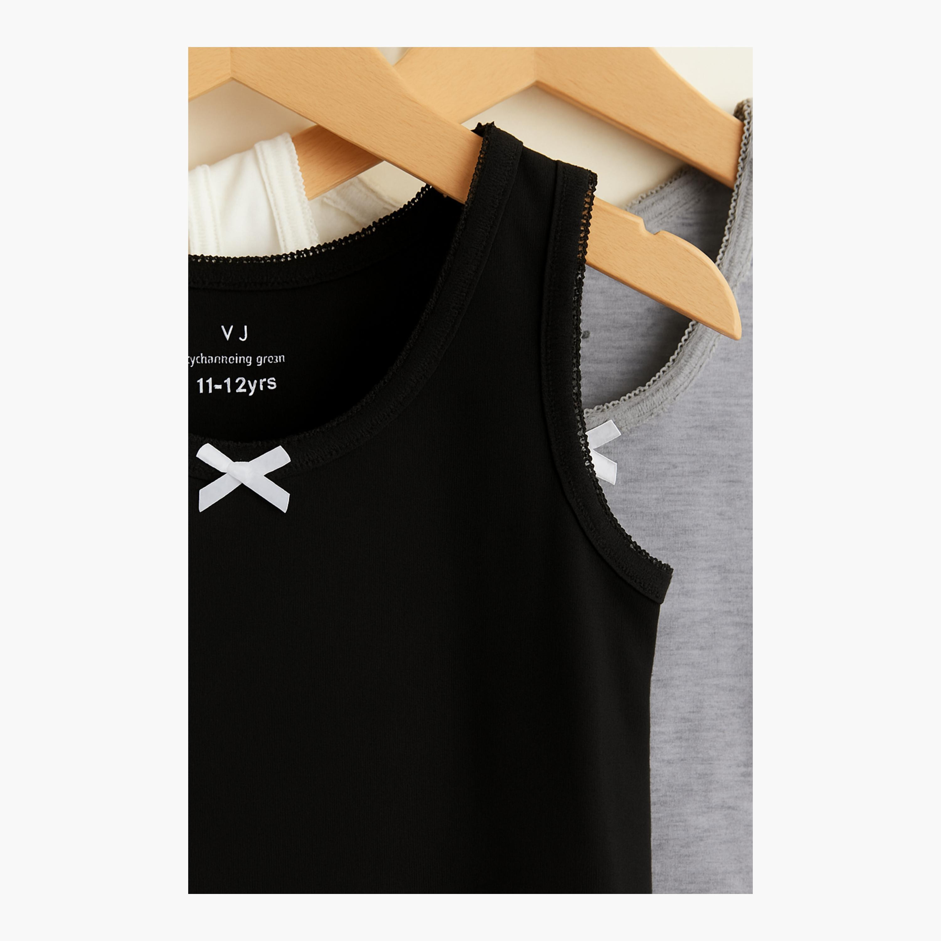 Crafted from a breathable cotton-spandex blend, these vests offer a snug yet flexible fit with stretchable trim, perfect for layering or standalone wear, featuring a pretty bow detail at the neckline for added charm.