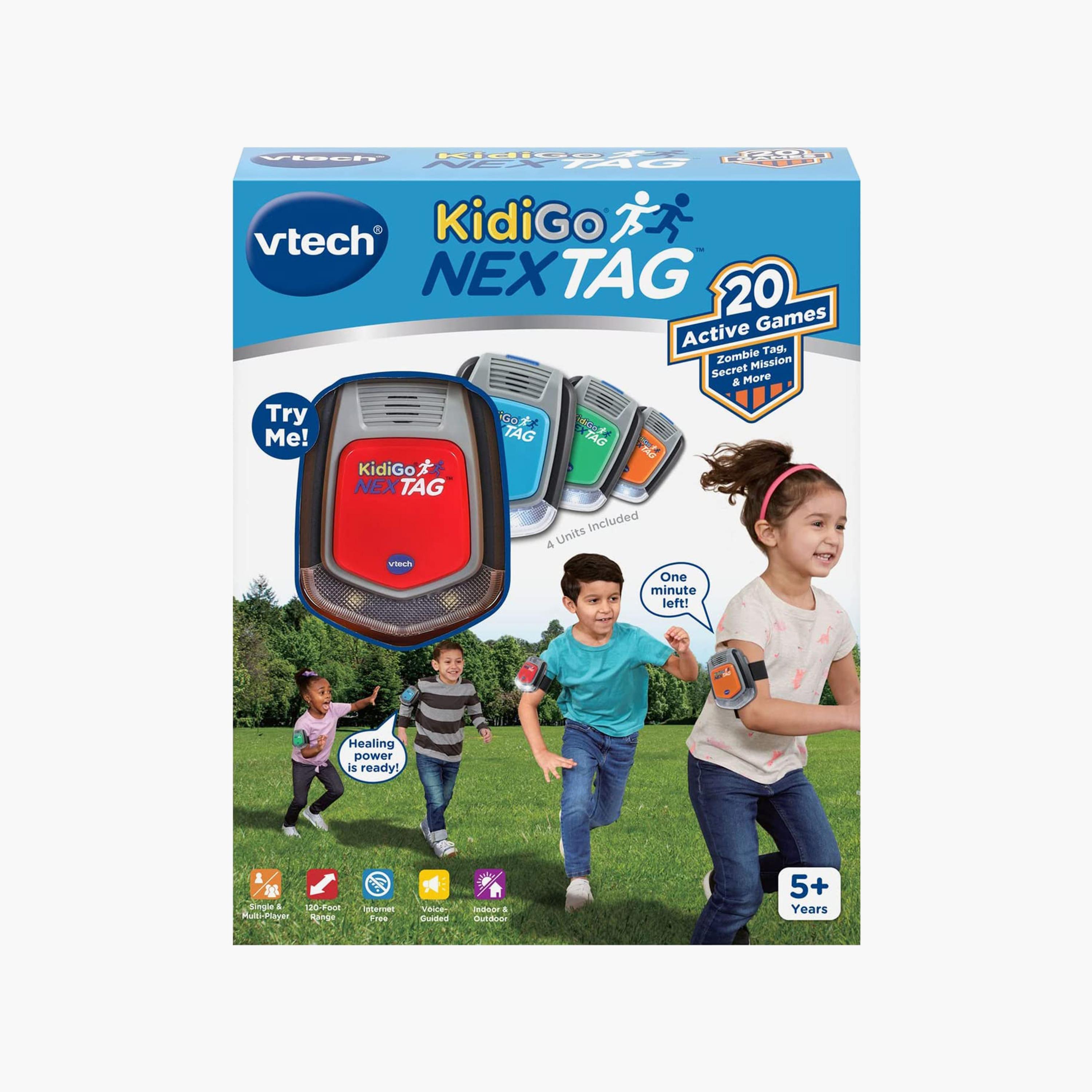 Introducing the Vtech 4-Piece KidiGo NexTag, the ultimate game for the whole family! With 20 thrilling games to choose from, including capture the flag, hide-and-seek, and freeze tag, endless fun awaits. The arm units not only explain the easy-to-learn rules but also keep track of who's it and who won, eliminating the need for a referee. Whether you prefer playing indoors or outdoors, this game has got you covered, and the best part is, no internet connection is required! With a remarkable 120-foot range between units, you can enjoy hours of excitement and friendly competition. Get ready to create unforgettable memories with the Vtech 4-Piece KidiGo NexTag!