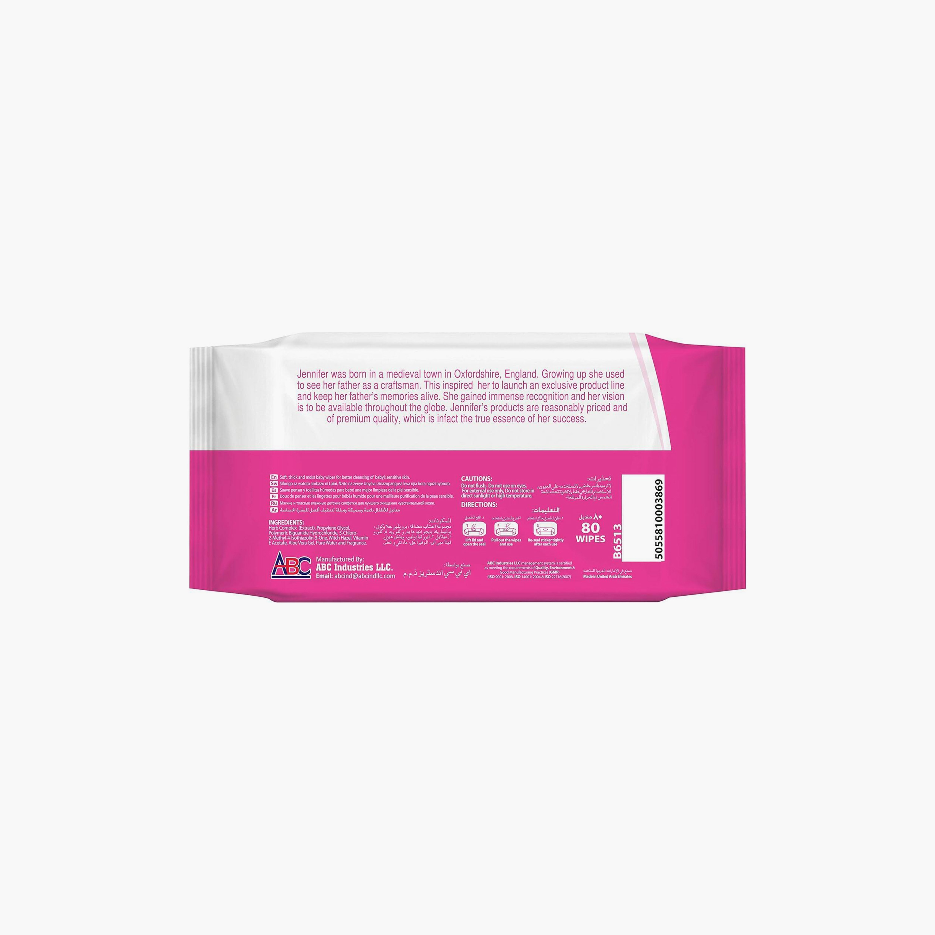 مناديل جينيفر للأطفال خالية من الكحول، مما يضمن تنظيفًا لطيفًا دون التسبب في أي تهيج أو جفاف، مما يجعلها مثالية للبشرة الحساسة.