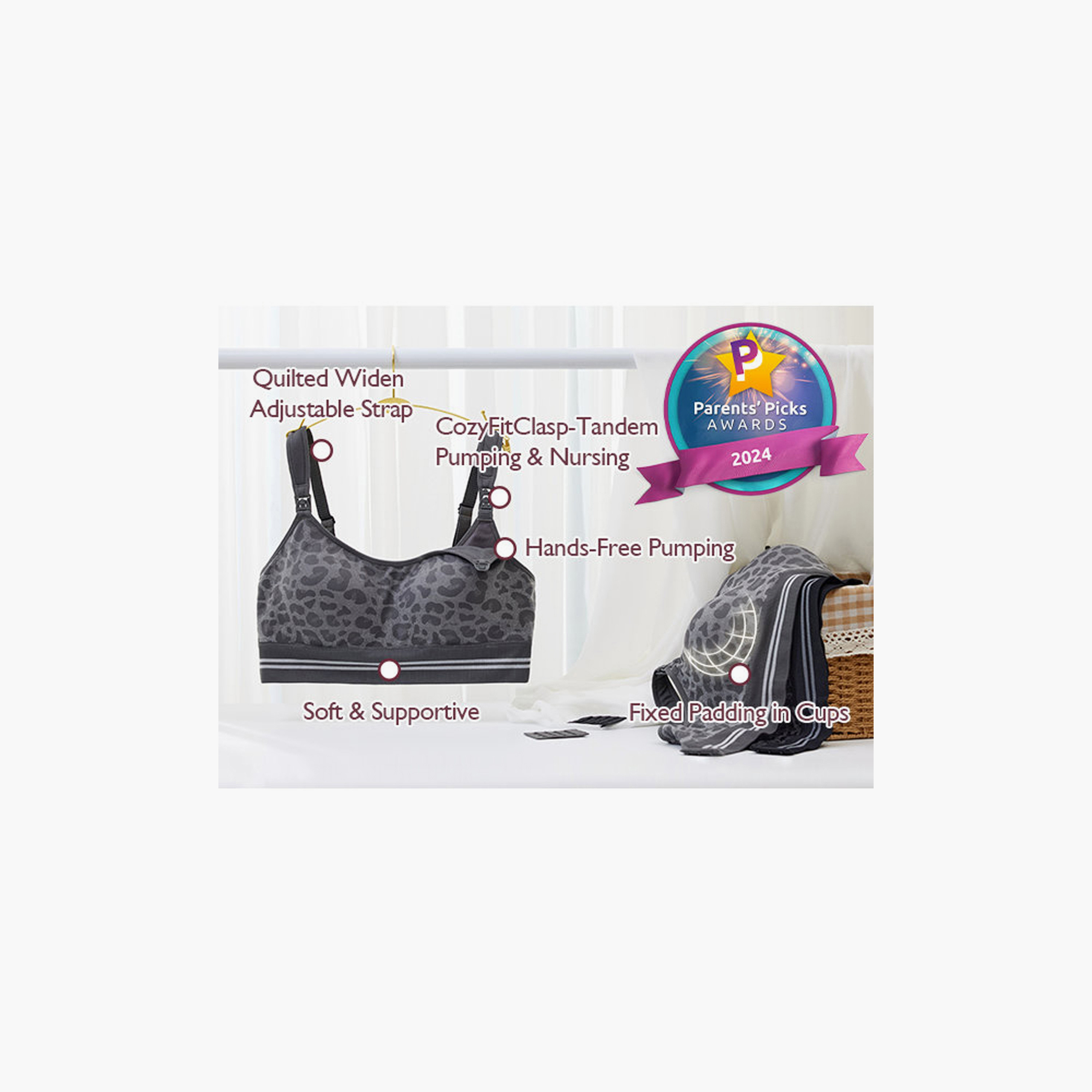 حمالة صدر للشفط بدون استخدام اليدين 4 في 1 نقشة فهد رمادي من مومكوزي