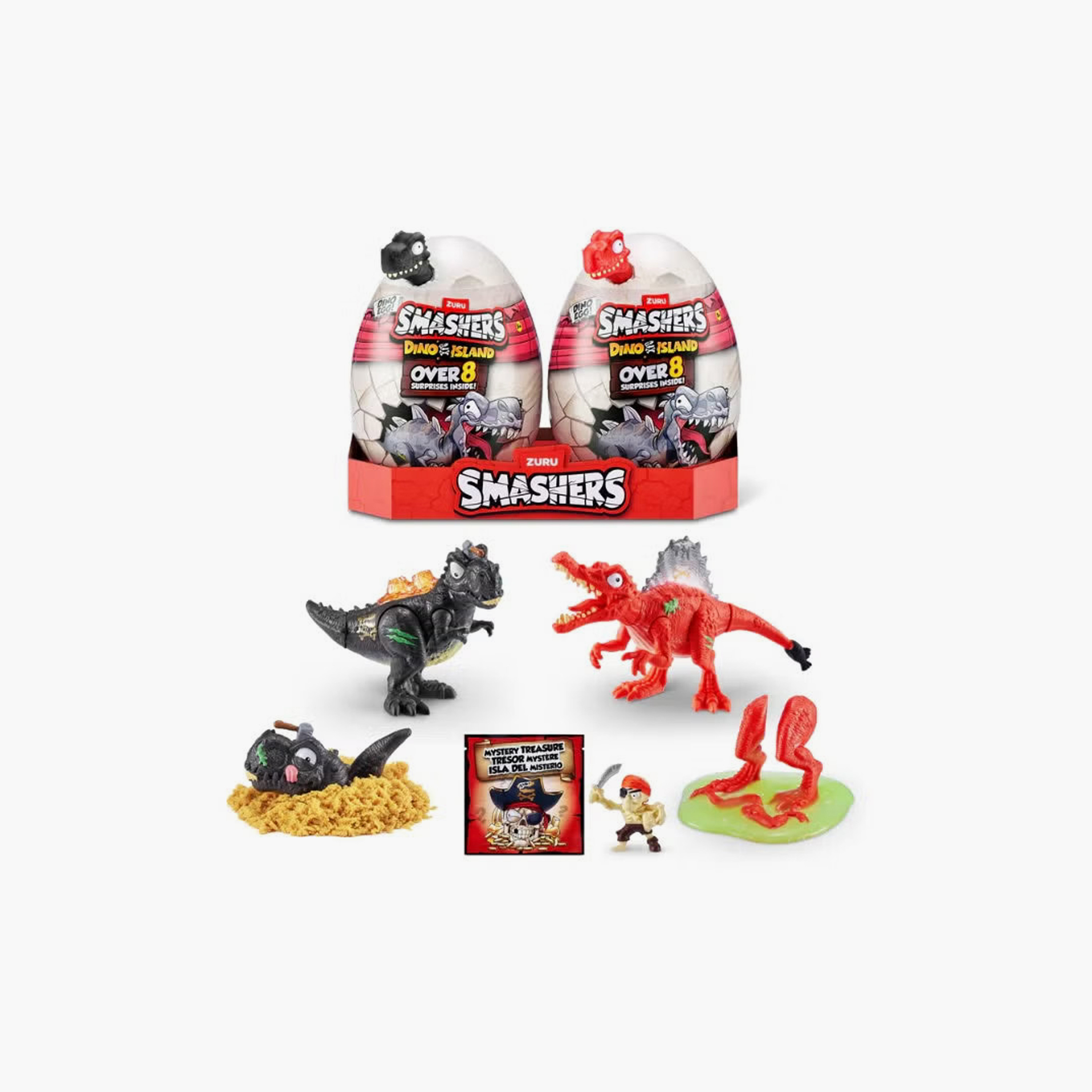 انطلق في رحلة شيقة من عصور ما قبل التاريخ مع مجموعة بيض جزيرة الديناصورات الصغيرة سماشر المكونة من قطعتين! حطم كل بيضة لتكشف عن 8 مفاجآت مثيرة مخبأة بداخلها. انقب في الرمال الناعمة والوحل المطاطي لتكشف عن قطع الديناصورات، وجمّع ديناصورات تي ريكس الجبارة، أو سبينوصور المخيف، أو ستيجوصور المتخفي. لكن احذر من تمثال القرصان المزعج الكامن في الداخل، والمستعد لإجبارك على السير على اللوح الخشبي! هذه المجموعة المليئة بالحركة مثالية للأطفال المغامرين، وتَعِدكم بمتعة واكتشاف لا حدود لهما. ماذا تنتظرون؟ ابدأوا التحطيم وانطلقوا في مغامرة الديناصورات الملحمية اليوم!