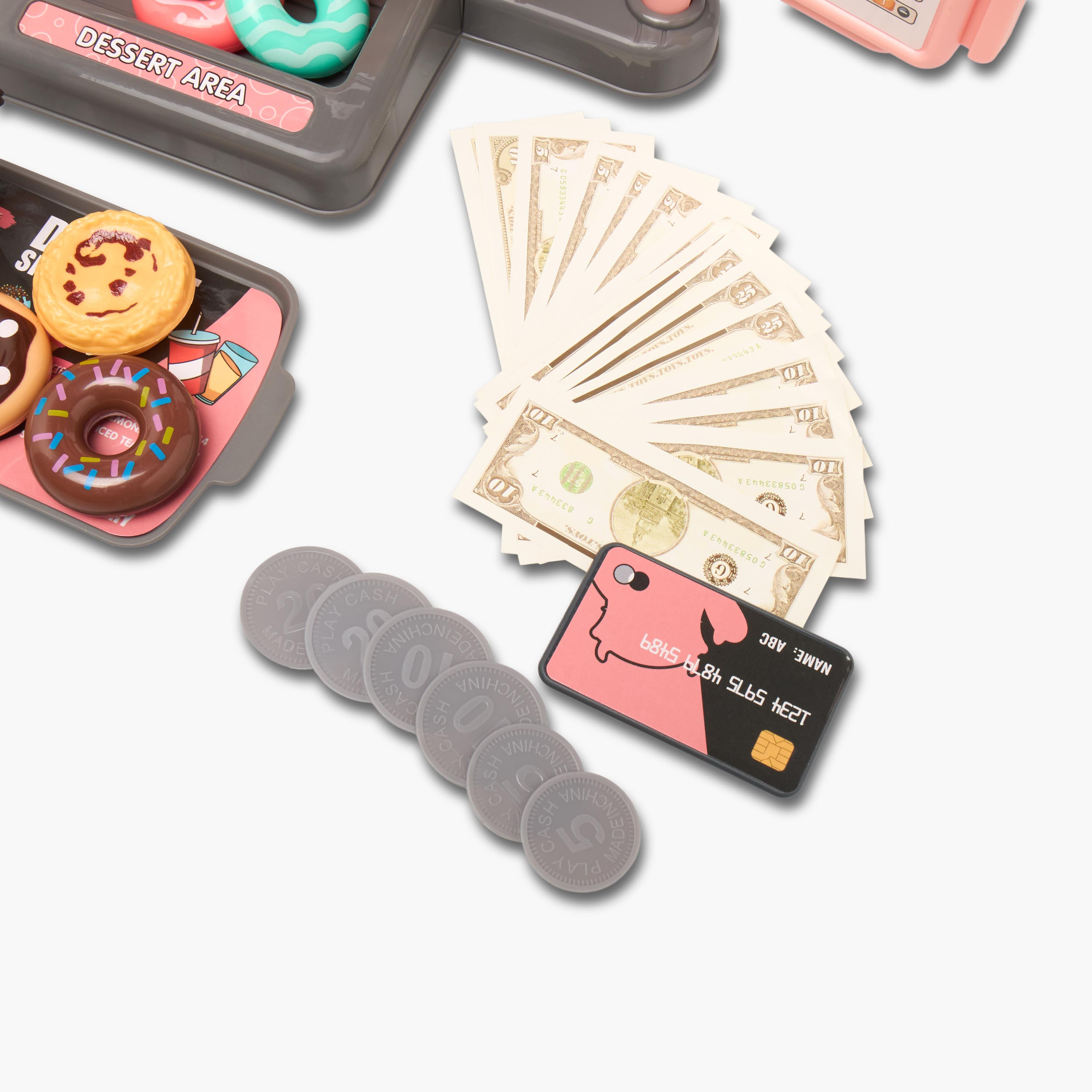 Inspire imaginative play with this comprehensive dessert shop role playset, designed to engage children in creative scenarios. This playset features a charming dessert stand, various play food items including doughnuts and pastries, and accessories such as play money and a credit card. It promotes social development and fine motor skills through interactive play. Children can enjoy hours of entertainment, enhancing their understanding of commerce and social interaction.
