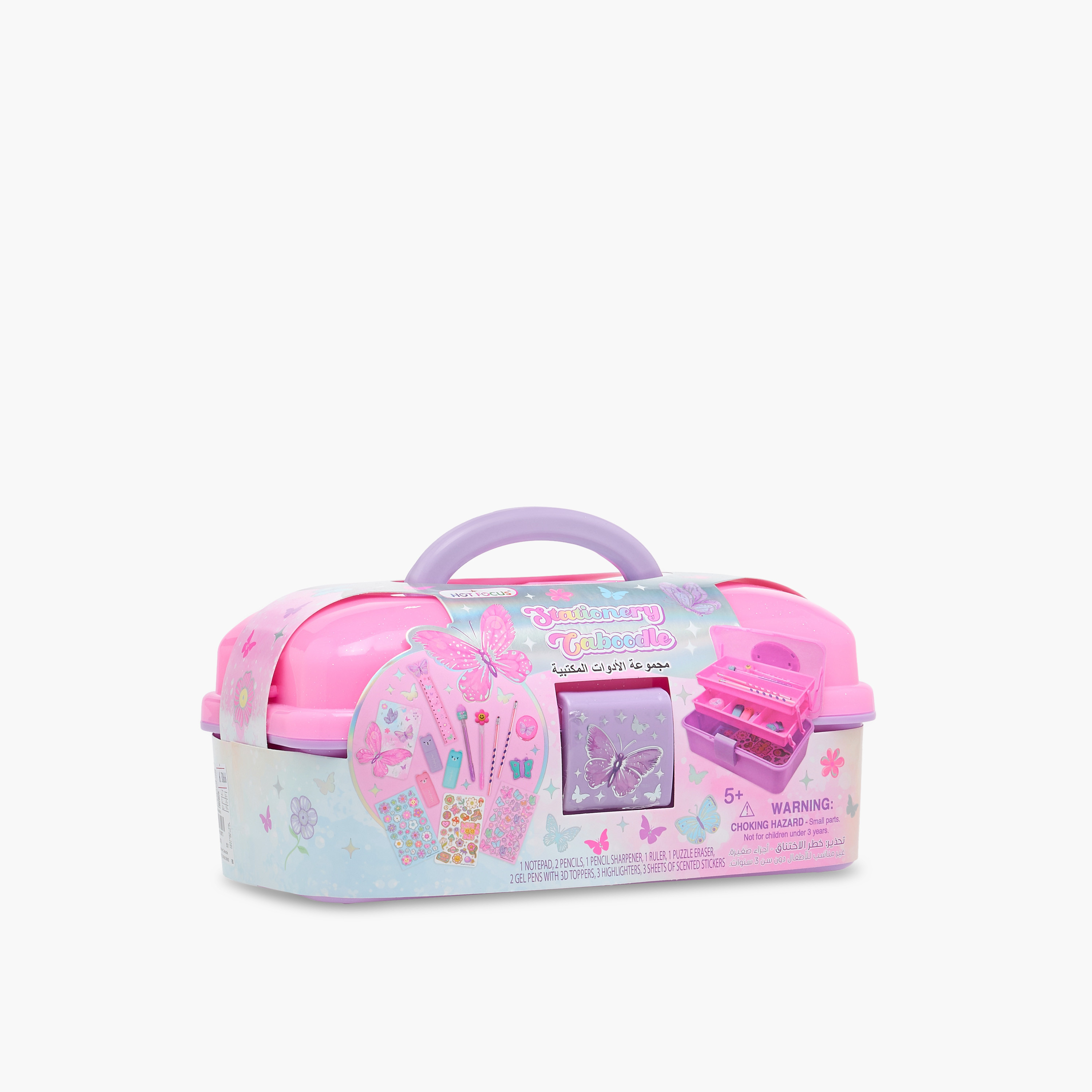 This charming stationery caboodle offers convenient storage for all stationery essentials. It features two extending trays, allowing you to organise pens, pencils, erasers, and more. This portable design makes it ideal for school, home, or travel, keeping stationery neatly contained. The butterfly clasp adds a touch of whimsy, making it a delightful addition to any workspace.