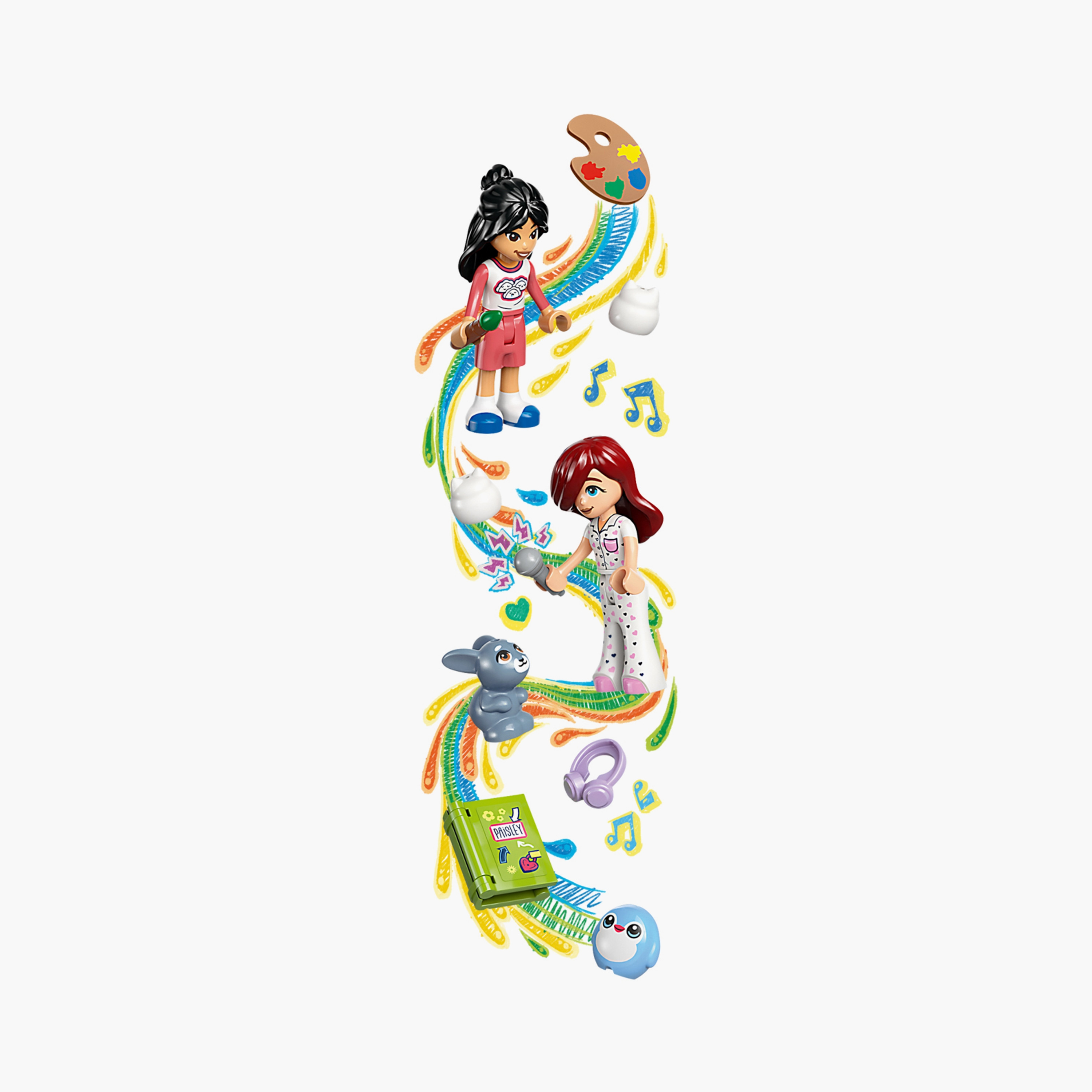 Includes 2 LEGO® Friends characters and a pet bunny figure