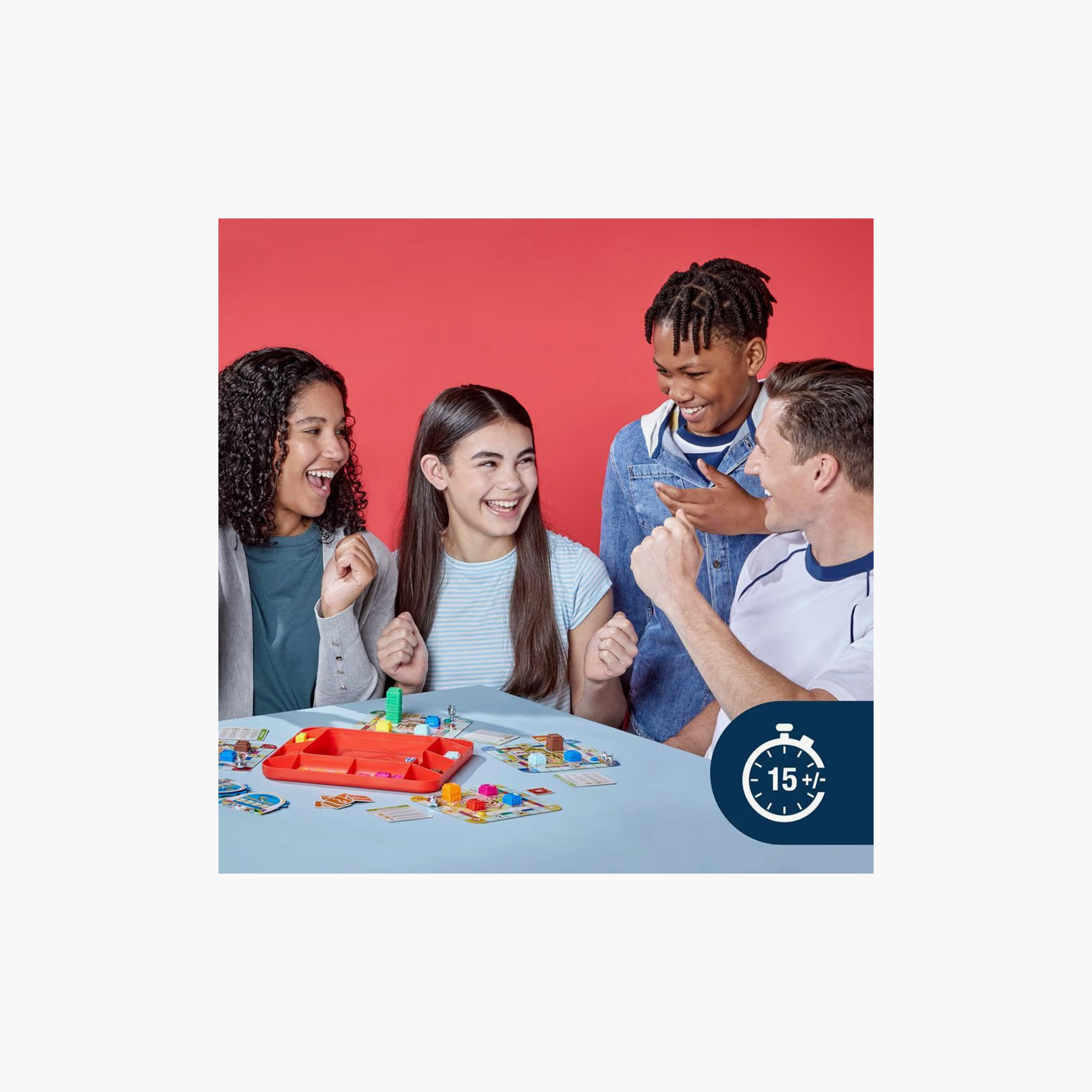 Introducing the MONOPOLY GO! Tabletop Version, a dynamic twist on the beloved mobile app game, now available for social tabletop play! Dive into this exhilarating family board game where the race is on to build a landmark first. Each player selects a mini gameboard featuring a favorite location and a matching-colored die. Simultaneously roll your dice and move around your board, collecting landmark blocks when landing on color spaces. Use strategic moves like Bank Heists, Shut Downs, and Mega Shut Downs to outwit your opponents. The first to stack four matching-colored landmark blocks wins! Perfect for family game nights, this strategy game is ideal for kids, teens, and adults alike. A fantastic gift for Monopoly enthusiasts aged 8 and up, MONOPOLY GO! promises endless fun and competition.