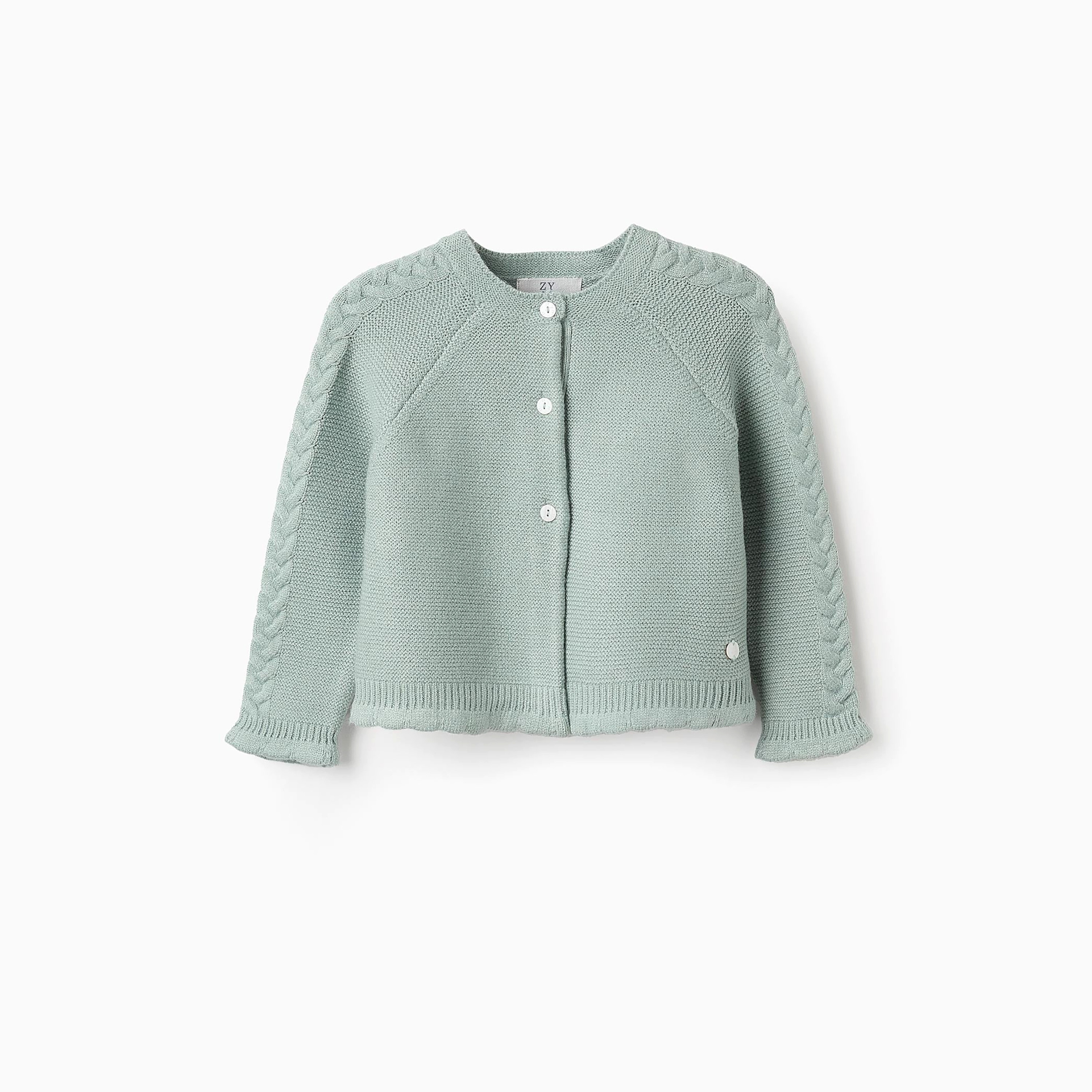 This cardigan is made from a soft and breathable fabric that is gentle on delicate skin. The fabric is also machine washable, making it easy to care for. The cardigan features a classic design with a comfortable fit, ensuring maximum comfort and ease of movement.